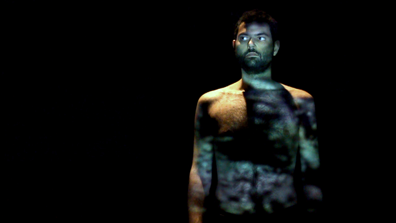 Eram Sobhani s’empare de ce texte aux allures de cours de science et nous attire dans une proximité telle que l’on a peu à peu le sentiment d’être de la termitière. Les précisions qu’il apporte, qu’il habite, qu’il dessine avec son grand corps fin, nous donne progressivement l’impression de partager l’intimité de cette inquiétante société. Le temps du récit, émaillé de musique sacrée, devient l’espace clos de la misère de ces insectes. Les observations de Maeterlinck se concentrent sur les capacités de résistance, la peine et l’écrasement de ses individus minuscules. Et lorsqu’au sol, sur la toile blanche tendue, sont projetées les images de ces animaux souterrains, lorsque l’acteur à portée de souffle se recueille devant ces êtres grouillants mystérieusement, il nous renvoie à nos propres aliénations. Et, se penchant sur ses peuples cachés, il nous tend le miroir de nos propres fourmillements, de nos sociétés tout aussi utopiques, tout aussi infernales.La termite gracieuse qui n’a que le choix du combat à mort, pour survivre dans les ténèbres depuis des millions d’années, devient progressivement le reflet de nos propres agitations.