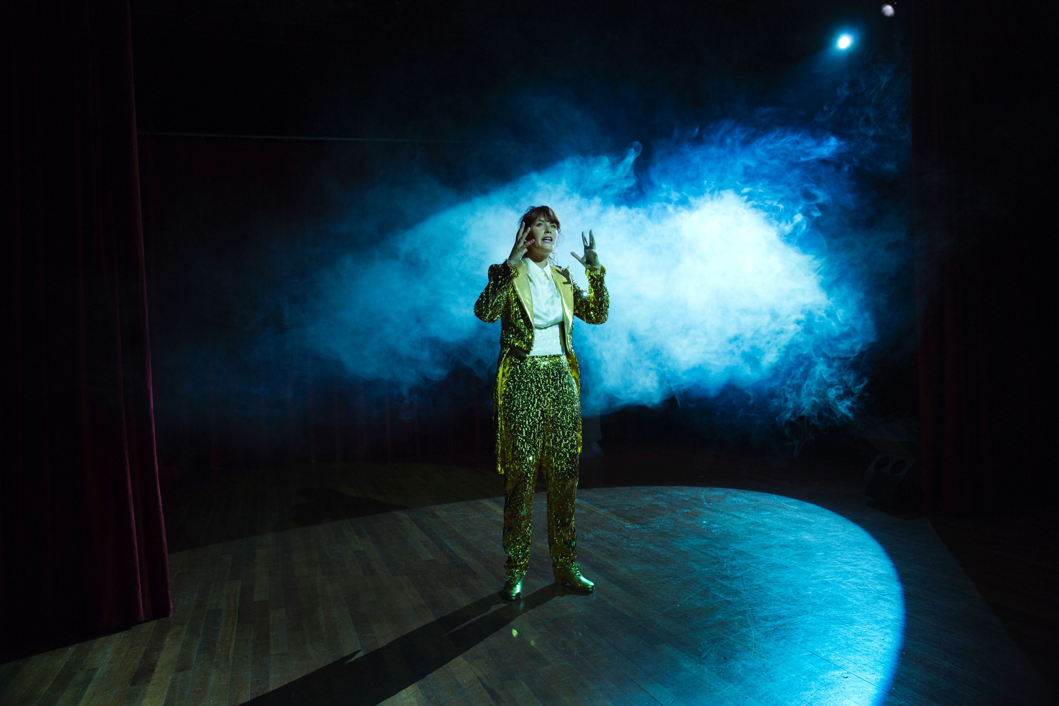 Est-ce pour cette raison que la jeune néerlandaise Marjolijn Van Heemstra peut nous embarquer si magnifiquement dans son « théâtre documentaire » ? Pas donneuse de leçon, elle est dans son costume en paillette devant son micro et elle témoigne ou plutôt elle nous parle de son cheminement d’appartenance, non plus à une société, mais au monde. « Garry Davis » est le troisième volet de son « triptyque sur le monde globalisé  et l’altérité » qui lui a permis de tenter d’effacer les frontières, son passeport de « citoyenne du Monde » dans la poche (passeport que très malicieusement Garry Davis lui a vendu pour 35 dollars).