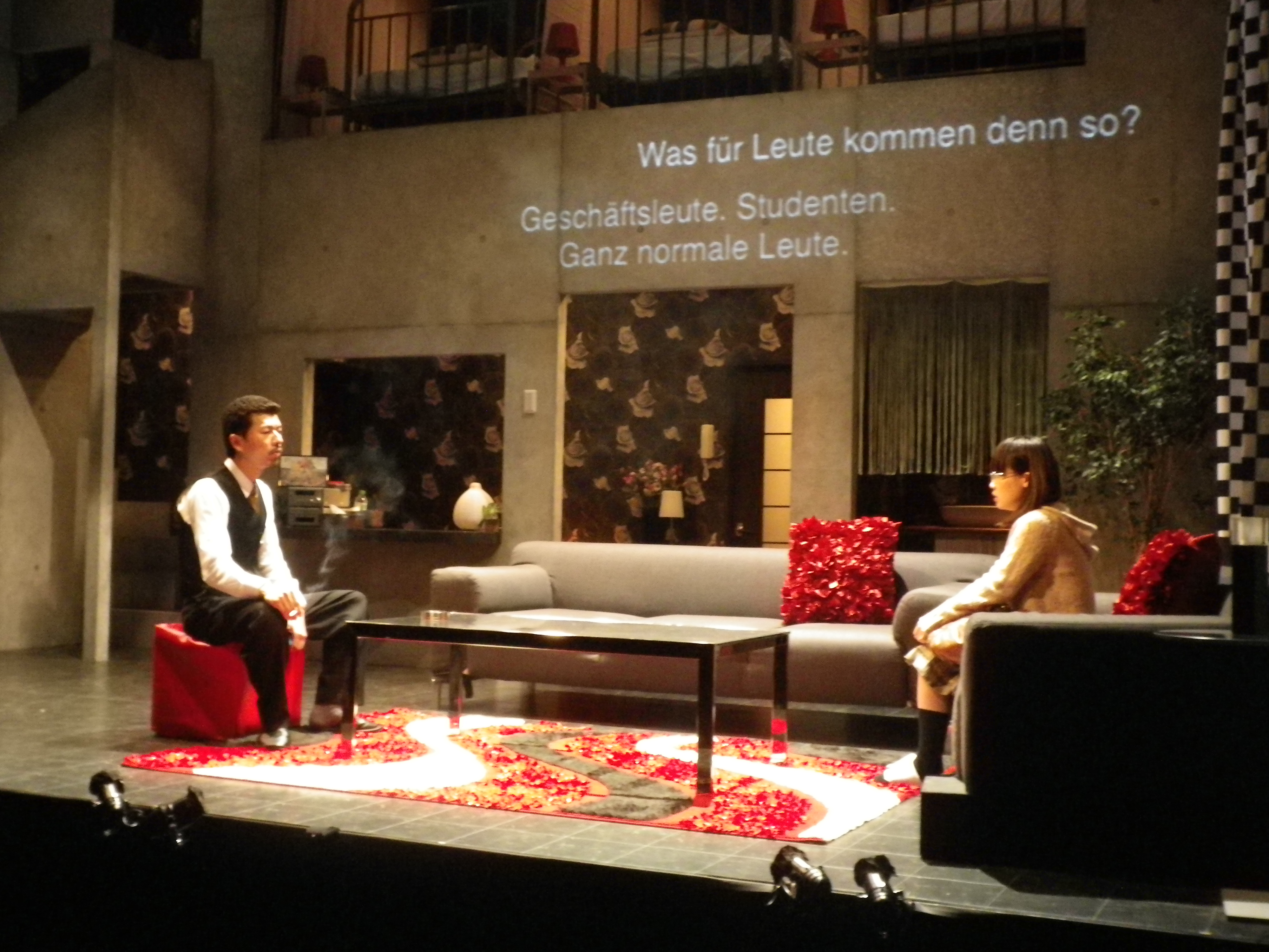 Daisuke Miura, le metteur en scène, signe une mise en scène hyper réaliste, quasi documentaire. Sauf qu’il s’agit bien de fiction et de théâtre. C’est une mise en scène en creux où, à l’image de l’acte sexuel, rien de ce qui importe se voit. Ce qui se joue n’est pas dans le dialogue mais dans le silence qui soudain s’abat, dans les corps qui hésitent, flanchent ou se lâchent. Certes on voit crûment des corps qui s’ébattent, qui hurlent leur plaisir. Mais l’intelligence de Daisuke Miura est de donner à voir en toute logique ce que l’on attend, ce qui est annoncé et de placer ainsi l’obscène hors champs, dans le regard du spectateur devenu ainsi voyeur. Les faits sont bruts, nous les réinventons. Nous les déplaçons dans un hors scène qui renvoie à notre expérience, notre propre jugement. Daisuke Miura botte ainsi en touche avec beaucoup d’intelligence et d’humour.