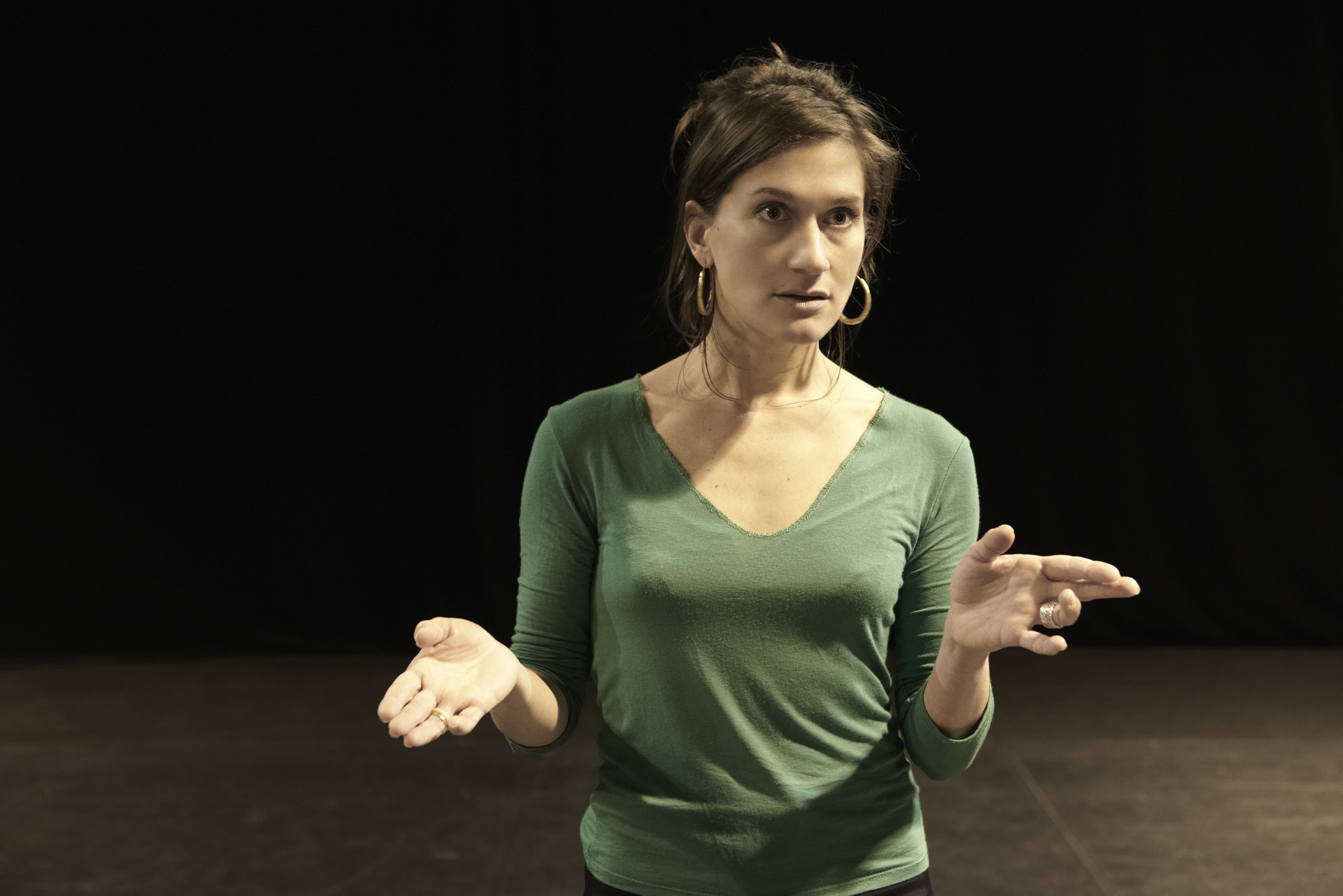 Si cette performance menée avec brio peut simplement séduire et amuser au départ, elle produit ensuite un effet quasi hypnotique et troublant, à mesure que la comédienne passe d’une parole, d’une voix, d’une corporalité à l’autre. Le parti pris est d’admettre qu’elle n’est évidemment pas en mesure de reproduire à l’identique les extraits sonores choisis, mais de s’emparer de cette partition et de tenter de restituer le rythme, la cadence, le débit de la parole tout en s’appropriant l’interprétation. Au-delà de la musicalité de cette pièce, l’aspect dramaturgique est fondamental. En faisant se répondre des mots, des rythmes, des situations, en créant des vrais chocs parfois, Joris Lacoste crée du sens. Cela produit des bizarreries parfois, des effets comiques souvent, une grande force aussi. Le spectateur se focalise sur la voix, l’intention, le volume, le sens des mots ou pas, puisque les textes choisis peuvent aussi bien être en français, en anglais, qu’en une langue que l’on ne peut identifier, mais qui produit un effet de réception singulier à l’écoute, justement parce que le sens des mots n’est pas le principal enjeu.