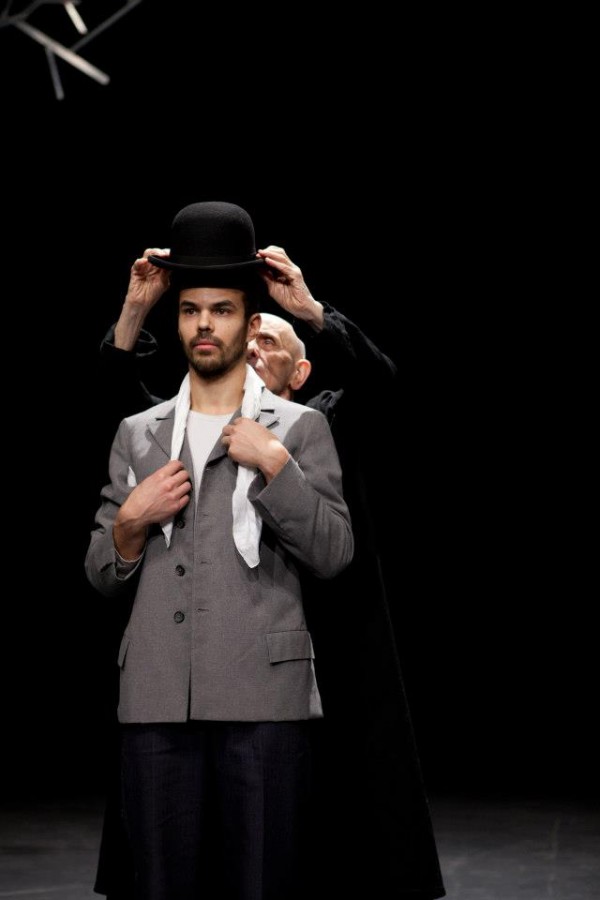 Quand débute le spectacle ces deux-là qui s’avancent vers nous, émergeant lentement de l’ombre, offrent une image stupéfiante. Ils sont le résumé possible d’une vie, son commencement et sa fin, celle de ce personnage aux tâches vaines et la préfiguration d’un destin absurde. Le résumé de cet « Encore » propre à Samuel Beckett, ce que marmonne autrement un court instant Dominique Dupuy: « La fin est dans le commencement et cependant on continue. »