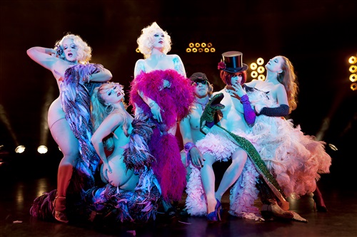 Les effeuilleuses du « Cabaret New Burlesque » sont de retour ! Kitten on the Keys, Dirty Martini, Mimi Le Meaux, Julie Atlas Muz, Catherine D’Lisch, Peekaboo Pointe, Roky Roulette… Toujours aussi cash, trash et classe, toujours aussi drôles et subversives. Sublimes créatures, venues des quatre coins des États-Unis, réunies de nouveau par Kitty Hartl, elles présentent de nouveaux numéros. À chacune son univers, toujours aussi décalé, toujours aussi joyeusement provocant. Plumes et strass, corsets précieux, bas et talons vertigineux, pasties sur les tétons, rien ne manque au rayon accessoires. C’est sexy en diable ! Mais avec cette intelligence qui n’appartient qu’à elles de détourner les codes de la représentation féminine, leur corps somptueux et hors normes, crânement assumés, renversent dans un grand éclat de rire toutes les valeurs. C’est d’une liberté totale et jubilatoire ! Elles puisent aux sources du cabaret et du strip-tease – pour exemple la reprise d‘un numéro de Loïe Fuller ici détourné-, créent un music-hall engagé, enragé, sauvage et sophistiqué, réinventent une forme nouvelle, performance et manifeste féministe… En ces temps de pudibonderie réactionnaire où les droits des femmes sont de plus en plus remis en question, l’impudeur et le rire sont des armes formidables. Le plus subversif est sans doute d’y associer un homme. Rocky Roulette qui, loin des numéros de gogo-boy traditionnel, s’empare ainsi des codes du strip-tease féminin qu’il s’approprie avec beaucoup d’humour.