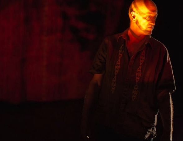 Comment dire les choses autrement ? Non seulement la mise en scène n’apporte rien à l’œuvre originale, mais qui plus est, elle l’appauvrit. Dans le texte de Conrad, il y a une forme d’introduction au récit, Marlow est sur un yacht avec des amis et alors qu’ils sont bloqués par la marée, il se met à raconter son étrange histoire, depuis le moment où il flâne dans les rues de Londres jusqu’à sa rencontre avec le directeur de la compagnie et ensuite son départ pour l’Afrique et tout ce qui va s’en suivre. Dans la pièce, rien de tout cela, le comédien arrive de nulle part, et seul en scène, dans des habits de tous les jours, pantalon bleu et chemise brune, une bouteille d’eau à la main, il démarre son texte. Au bout d’une minute trente on a compris, le spectacle va se dérouler ainsi, 1h50 de récitation, il ne va strictement rien se passer.