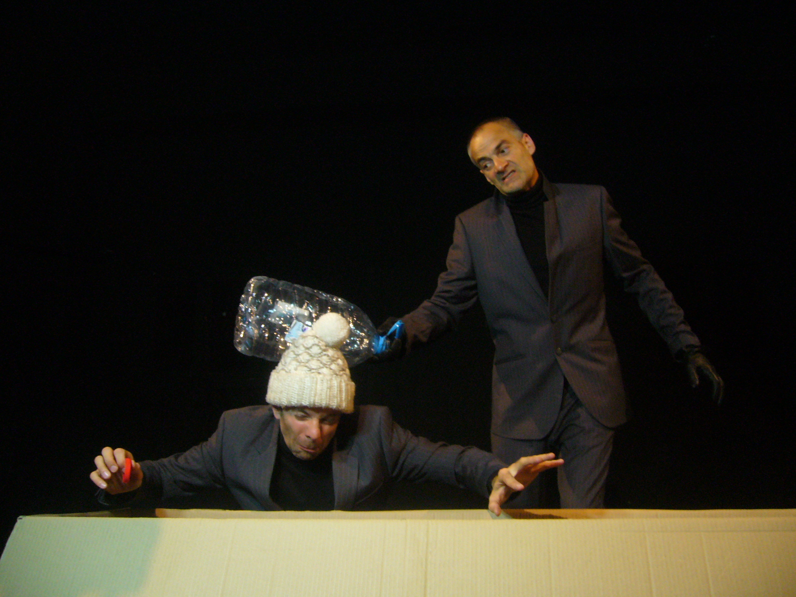 Deuxième spectacle de la Compagnie TàbolaRassa, “Fables” compose et adapte une suite de quinze fables de La Fontaine à partir de cette vision d’un monde moderne cantonné sur son rivage d’emballages usagés. Adeptes d’un théâtre de mots, de corps et d’objets, Jean-Baptiste Fontanarossa et Olivier Benoit, qui met également en scène, jouent, dansent et virevoltent, font feu de tout plastique, papier et tissus, pour représenter le loup, l’agneau, le meunier, son fils et l’âne, et tous ces animaux malades de la peste que sont les tourments du comportement humain socialisé.