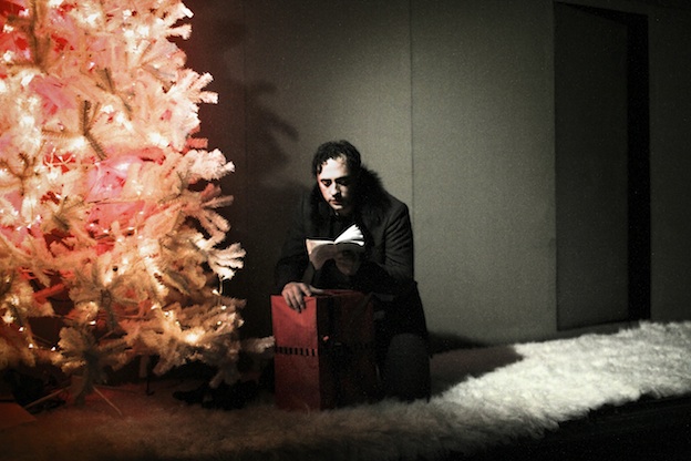 La lecture de « La Faim » dirigée par Arthur Nauzyciel se veut un peu veillée, un peu théâtre, un peu récit. L’arbre de Noël pour la veillée, le rideau de fer, quelques fragments du texte appris par cœur pour le théâtre, et la lecture pour le récit. C’est sur une envie de Xavier Gallais qu’Arthur Nauzyciel a accepté de l’aider dans l’élaboration de cette lecture. Le besoin de faire entendre « La Faim » a décidé le comédien à monter seul en scène. Il ne voulait pas de numéro d’acteur et être hors de la technique. Le public, tout d’abord en pleine lumière, voit l’intensité des projecteurs diminuer, peu à peu, pour aboutir dans l’intimité d’une veillée. Xavier Gallais, au centre de la scène, commence la lecture. Au bout d’une trentaine de minutes, entre la lecture et le jeu, le roman surnage et l’engourdissement de notre concentration en souffre. La mise à nu et le lâcher-prise que souhaite le comédien n’est pas vraiment visible. Chassez le comédien, il revient au galop. Tout ce qui ne doit pas être arrive, et l’on voit la construction d’un personnage qui s’ébauche contre la volonté de l’acteur. Ce qui fait que l’on ne voit pas assez la folie de la faim, la révolte subjective contre Dieu et l’individualisme du personnage. La situation et l’action, qui viennent du jeu, sont parasites avec la lecture. On voulait laisser la parole au texte, à l’auteur, mais c’est le jeu et la technique que l’on voit. La lecture publique est un art difficile et cette « Faim » hybride, à part de rares moments, ne nous mène pas à satiété.