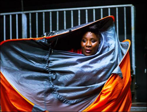 D’emblée, quand nous pénétrons dans la salle du Théâtre de la Bastille, nous sommes quelque peu déstabilisés. C’est un vaste campement de tentes, de celles qui furent plantées sur le quai Valmy, abris de secours pour les sans domicile fixe et les mal-logés. Malaise.