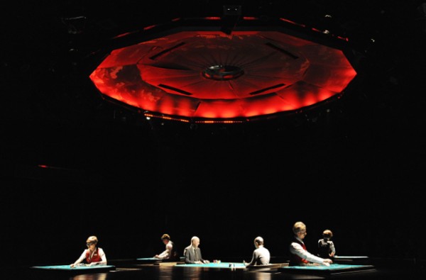 Le « croupier » Robert Lepage distribue les cartes de sa mise en scène avec maestria. Sa direction d’acteur rafle le tapis ; et ses joueurs autour de la table sont tous à citer : Sylvio Arriola, Nuria Garcia, Tony Guilfoyle, Marton Haberstroh, Sophie Martin, Roberto Mori et bien sûr les techniciens de l’ombre sans qui le Deus ex machina ne pourrait s’incarner.