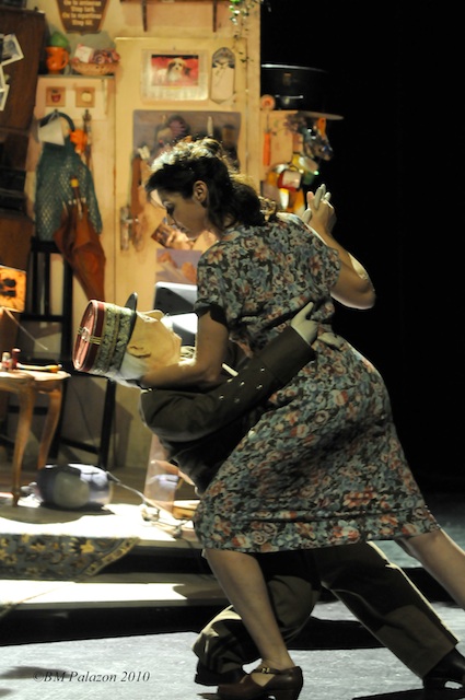 Zabou Breitman s’empare d’une œuvre récompensée par un accueil favorable du public. Elle adapte, met en scène et interprète le récit d’une tragédie familiale que l’auteur a su rendre “atrocement drôle”. Aux insultes et hallucinations de la mère, la comédienne y mêle une énergie jubilatoire et communicative. Passée la légère frayeur du début du spectacle où l’unique récit contant la visite de l’huissier s’éternise un peu, on assiste très rapidement à une interprétation vive des différents protagonistes, la mère, la fille et l’huissier. Les narrations s’enchaînent et la comédienne leur donne vie allant jusqu’à exécuter quelques pas de danse avec la marionnette du Maréchal Pétain, une chorégraphie “amoureuse” et savoureuse.