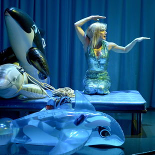 Comment survivre au ravage d’une rupture amoureuse qui vous laisse hagarde. Se laisser couler avant de refaire surface. Puis nager encore, faire des longueurs, éprouver sa résistance. Le Regard du nageur c’est le récit d’une résilience. Sur un plateau devenu pataugeoire, une nageuse, bientôt sirène, exprime cet état de sidération propre à la noyade amoureuse. Le regard de celui qui, tête dans l’eau, ne perçoit des visages qui l’entourent et de la réalité, que de vagues contours flottants. Christèle Tual, auteur et comédienne, file la métaphore aquatique et sportive. Mais bientôt c’est nous qui sommes noyés. Malgré une mise en scène plutôt réussie, une scénographie qui tient la fois du pédiluve et de l’aquarium, des idées originales, un peu d’humour, on ne sait vraiment pas où tout cela nous mène. Le texte clapote doucement, nous file comme de l’eau entre les doigts. Le parti de murmurer ce texte, avec une légère réverbération propre aux espaces aquatiques, n’arrange malheureusement rien. On ne retient pas grand-chose, on ne sait pas où tout cela nous mène, perdus dans les méandres d’une pensée dont on peine à saisir le sens. Et dont la portée se dilue progressivement. On aurait aimé plus de crêtes, plus de houle à ce doux clapotis.