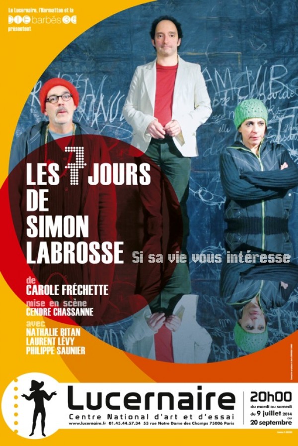 Pauvre Simon ! Chômeur qui chaque jour tente de résister à la crise en inventant des petits boulots improbables, originaux certes mais voués immanquablement à l’échec. « Cascadeur émotif », « Finisseur de phrase », « Flatteur d’égo »… Et puis il y a Nathalie, celle partie en Afrique s’occuper des démunis et qui ne répond jamais aux messages de Simon tout aussi démuni devant ce silence incompréhensible. Simon décide de nous raconter sa vie de galérien. Mais une vie c’est bien long, 7 jours suffiront bien. Et pour l’accompagner dans ses aventures, Léo le poète et Nathalie – parce dans le monde de Simon toutes les filles s’appellent Nathalie – folle de son corps intérieur, improviseront tous les autres rôles. Les 7 jours de Simon Labrosse, c’est l’épopée de trois paumés qui vent debout s’inventent une vie rêvée et luttent sans désespérer dans l’urgence et contre la précarité.