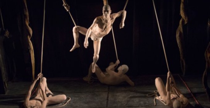 Corps blancs et quasi nus, Takuya Muramatsu et les sept danseurs qui l’accompagnent ne dansent pas. C’est bien au-delà. Corps dilatés, entre tension extrême et relâchement complet, corps expressionnistes grimaçants ou simplement présents, d’une présence aigüe et douloureuse, c’est toute l’humanité qui s’engouffre dans ces faces blêmes et ces corps blanchis. Le moindre signe de la main prend une ampleur démente et insoupçonnée. On peut y voir là, dans cette main qui oscille doucement, un délicat hommage à Kazuo Ohno dont ce fut l’un des derniers gestes de danseur. Ils ne dansent pas, ils sont l’incarnation de la danse dans ce qu’elle peut avoir de profond et d’ancré dans l’inconscient de chacun. Quelque chose de l’ordre du sacré. Gestes quotidiens sublimés, même se pendre devient un geste artistique violemment engagé et magnifique. Gestes entravés et corps manipulés, Takuya Muramatsu pratique l’art du Shibari dont il use ici comme d’une métaphore. Le shibari, art japonais du bondage sans la connotation sadomasochiste propre aux occidentaux, permet sur le plateau de manipuler en suspension un corps devenu inerte. C’est tout simplement époustouflant. Même un filet de cordes croisées, devient un cerveau en folie où les danseurs, devenus neurones s’entrechoquant, désarticulent Takuya Muramatsu. La corde ici entrave, désarticule, relie, sépare. Il y a quelque chose de terriblement organique soudain. Le corps encordé n’a plus d’équilibre, perd ses réflexes. Le danseur désarticulé est comme l’homme sans mémoire, il chute. Il lui faut se réinventer. Corps soumis à des réflexes sans intention, il devient un animal… Cette création nous emmène aux confins de la conscience humaine. Les métamorphoses successives des danseurs sont vertigineuses. Takuya Muramatsu s’enfonce dans une solitude terrible. Le dernier tableau est bouleversant. Sans mémoire l’homme, isolé de tous, n’est plus qu’un enfant qui découvre son corps, un vieillard à l’antichambre de sa fin. Son corps devient la mémoire vivante et oubliée d’une vie. « Oublie tout, et souviens toi ». Le titre prend soudainement tout son sens tragique.