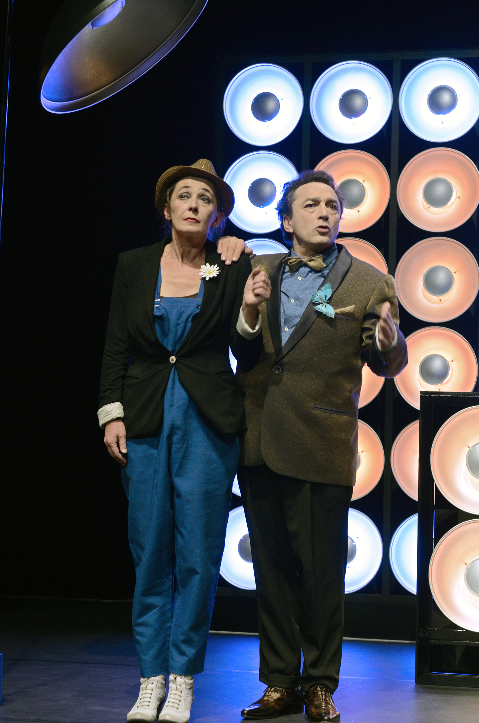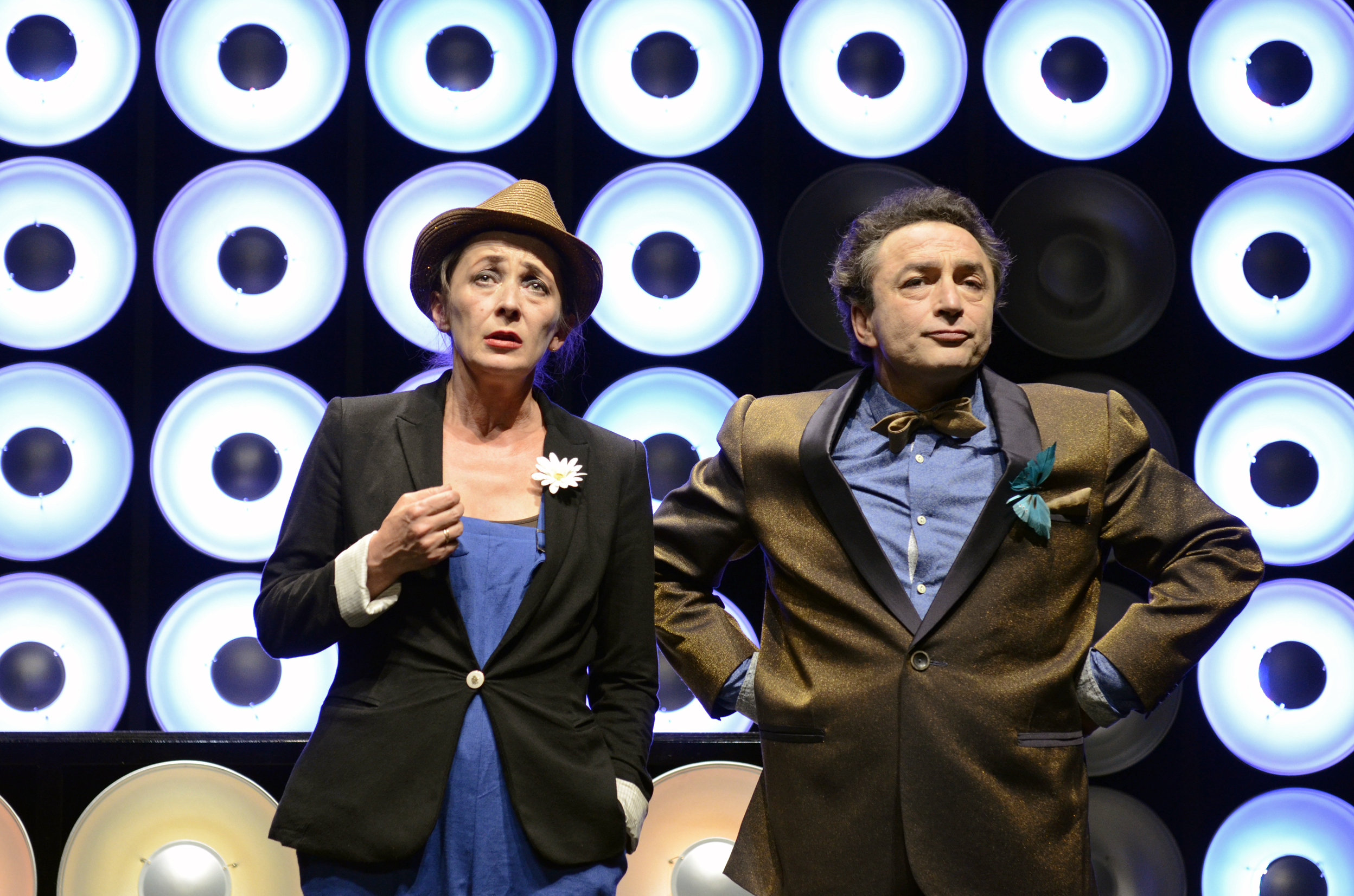Ils arrivent, lui dans son costume de guingois et elle, avec son chapeau, qui ne cherche pas à plaire. Deux clowns poussés par les lumières qu’ils ont dans le dos, nous racontent à leur manière la Genèse. Nous avons cessé notre course en avant pour remonter le temps avec eux. Ils parlent chacun leur tour, sans se regarder, raisonnent et pontifient, se coupent, se contredisent, spéculent, occultent, recourent à la dérision quand ils ne courent plus après l’évidence. Ils déclarent, démentent, digressent, le rythme s’emballe puis devient filandreux, chaotique, puis à nouveau s’affiche comme une main tendue. Ils déroulent l’ordre des choses depuis la Création, créent de légères turbulences à propos de toutes petites choses que nous avions vues mille fois sans vraiment les avoir vues, ils décalent le propos, décollent le vernis, installent une distance à l’encontre des préjugés. Ils s’inquiètent très légèrement des routes suivies, s’en éloignent, y reviennent avec nonchalance, presqu’indifférence. Avec cet air de ne pas y toucher, ils parlent de la femme, de nos comportements, de la mort. Ils rencontrent nos contradictions et maintiennent à leur endroit un regard de travers. Ils pratiquent l’effleurement, s’écartent du sujet pour mieux nous faire douter de ce qui nous fait sourire.