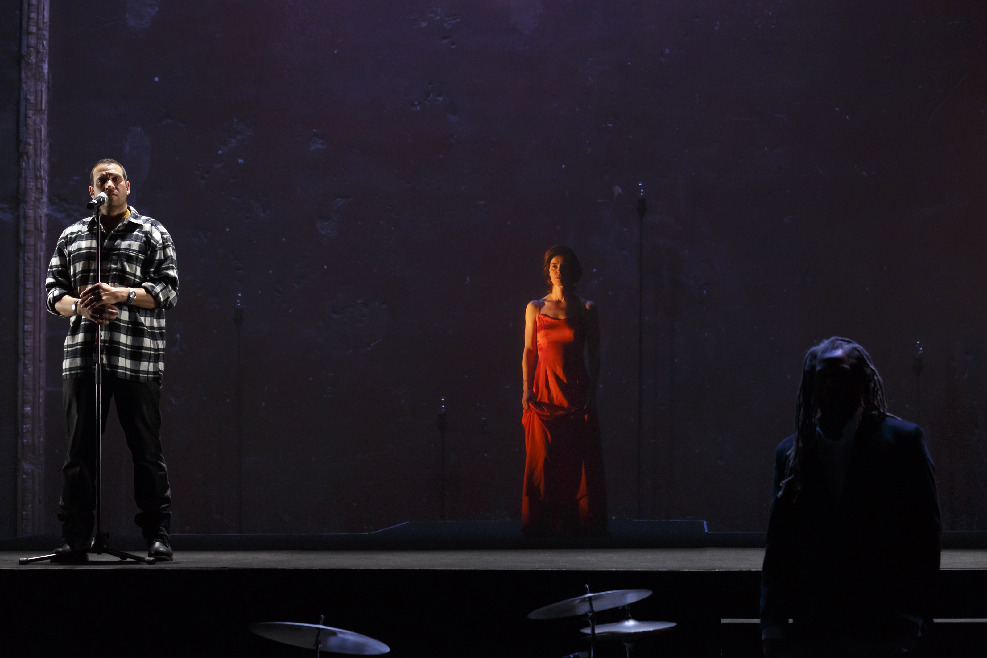 Au milieu de curieuses ombres portées, une étourdissante Ghost Dance entraîne les interprètes. Entre anglais, français ou lakota, Irène Jacob se fait tour à tour narratrice, personnage, chanteuse… Les voix tonitruantes de D’ de Kabal et Mike Ladd sondent, de leurs revendications passionnées, les ocres profondeurs. Regard pétillant de malice et accent sicilien, le porte-parole de la pègre, alias Franco Mannara, parade en blazer d’argent. Et, chaude et sensuelle, sublime en somme, s’élève la complainte d’Ursuline Kairson… En un espace simple, tripartite et coupé par un écran, on assiste à une réelle cosmogonie mettant en scène au premier plan la musique et trouvant un écho visuel dans les vidéos projetées par Eric Vernhes. Pages intimes, textes officiels ou extraits filmiques résumés (connaissez-vous John McCabe?), tout se superpose pour dresser le tableau complexe d’une Amérique composite en constante mutation.