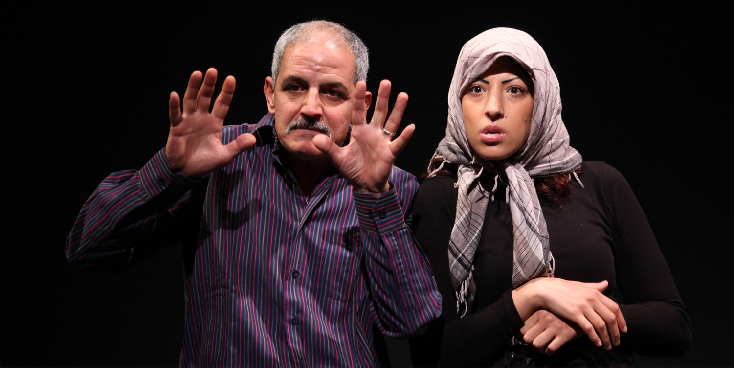 Avec les acteurs du Théâtre National Palestinien (Jérusalem) : Hussam Abu Eisheh, Alaa Abu Garbieh, Kamel Al Basha, Yasmin Hamaar, Shaden Salim, Daoud Toutah, Adel Hakim