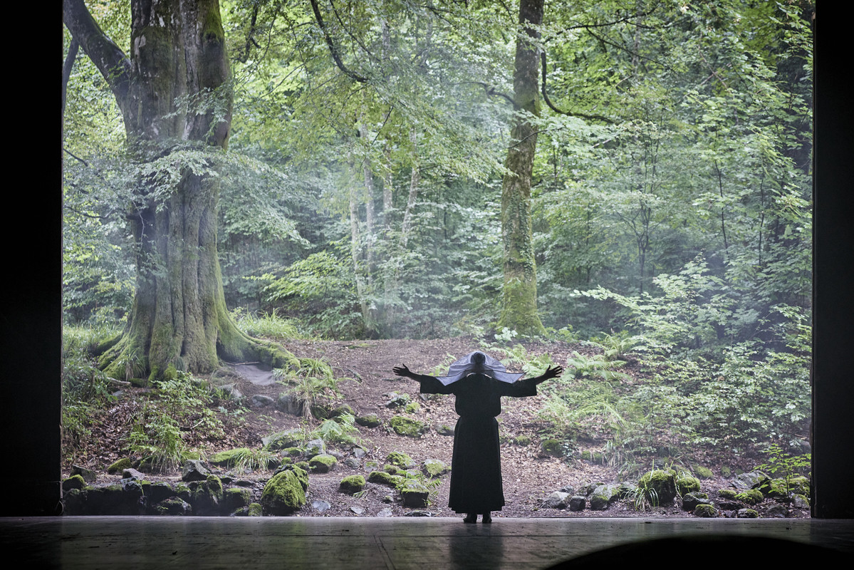 Dans l’écrin du théâtre en bois de Bussang, Cyrano de Bergerac trouve avec évidence sa raison et son public, à se demander pourquoi cette pièce n’y avait pas été montée plus tôt. C’est une mise en scène intelligente, vibrionnante, avec trois fois rien pour que s’y engouffre sans obstacle notre imagination et perlent nos émotions, où le texte est embrassé à bras-le-corps, à rebrousse-poil aussi des conventions et usages, dans son extraordinaire dynamique et fluidité, impulsant à la mise en scène sa formidable arythmie, épousant les battements de cœur d’un amour désaccordé. Katja Hunsinger et Rodolphe Dana ont privilégié l’urgence, la fébrilité, l’énergie, la spontanéité, dégraissant de tout afféterie amidonnée, d’effets empesés cette comédie héroïque, ce drame romantique, ce bel impertinent pied-de-nez hugolien. La pièce court fissa à son terme, file à perdre haleine et toute droite vers sa résolution, sans temps mort aucun. Simplicité de moyen et d’effet ne veut pas dire pour autant « goutte à l’imaginative ». Loin s’en faut. On y entend même, sacré culot, chanter du Barbara et du Jean Ferrat comme on chanterait un madrigal. Au premier acte, le Théâtre de Bussang ainsi occupé en son entier, de la scène aux travées, se métamorphose en l’Hôtel de Bourgogne. Au second, l’auberge de Ragueneau voit un défilé de marmitons conçu comme une comédie- ballet. Et il ne manque pas une lune pleine pour éclairer le balcon où Cyrano souffle son texte à Christian, trahissant son amour impossible pour sa cousine. Et l’ouverture des portes tant attendue, et aussitôt applaudie, participe subtilement lors de la Bataille d’Arras à la dramaturgie. Ouvertes au tiers seulement, au risque de notre frustration, les deux metteurs en scène font ainsi se dérouler le conflit à l’extérieur. La scène désormais vide de ses cadets de Gascogne devient un huis-clos sensible qui voit, alors concentré, le drame se nouer entre Cyrano, Christian et Roxane. C’est au dernier acte que les portes enfin sont grandes ouvertes sur cette perspective montagneuse, cette clairière qui fait du Théâtre du Peuple son originalité. Cyrano meurt avec panache au pied de son arbre, suivant en cela les didascalies, hors de scène donc et cela a son importance symbolique ici puisque retrouvant là, libéré enfin de son secret, sa vérité, sa vie n’ayant été qu’une comédie que la mort dénoue et dépouille tragiquement de sa théâtralité. L’expression « quitter la scène » prenant ici tout son sens.