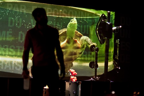 On ne souligne sans doute jamais assez la dimension littéraire et poétique des créations de Rodrigo Garcia. La force et l’originalité des images proposées et sur lesquelles nous nous focalisons occulte parfois le texte. Et ce qu’il y a de formidable avec « Daisy », c’est d’entendre et de confirmer combien Rodrigo Garcia est un auteur dont les textes ont une puissance toute aussi égale aux images crées sur le plateau par le metteur en scène radical qu’il est aussi. Seulement jusqu’à présent on ne retenait des performances que les propositions visuelles, toutes singulières, pertinentes et d’une grande force. Certains même, aveugles et sourds, n’attendaient que le scandale, ne retenait que le scandale qu’ils alimentaient, sans voir l’originalité, polémique certes, d’un artiste radical et sincère dont l’écriture avait tout aussi de sens que la performance offerte sur un plateau devenu champs d’expérimentation. Qui se souvient pourtant du texte « Golgotha Picnic », pour exemple, dont le scandale a éclipsé la valeur littéraire et son contenu réel ? Ou de « c’est comme ça et me faites pas chier ! » qui amorçait déjà une relative accalmie, sans image choc, où le texte émergeait de performances apaisées et tout aussi justes. Dernièrement la reprise de « Et balancez mes cendres sur Mickey. » permettait avec le recul de redécouvrir l’œuvre à sa juste valeur, passé donc la surprise et le choc des images polémiques, comme un ensemble où le texte avait autant de valeur que la performance qui en découlait. Avec Daisy – est-ce un nouveau tournant ou simplement la continuation logique ? – c’est le texte qui est mis en scène. Jusqu’alors les comédiens étaient la matière des créations de Rodrigo Garcia. Ici ils sont comme en retrait. Le texte devient la matière de cette nouvelle création. Peu d’images, pas de performance en soi, mais des monologues illustrés d’images projetés, c’est tout ou presque. Le texte, lui, est projeté non comme des sous-titres classiques, mais comme élément de la scénographie. Il s’affiche à l’égal des images vidéo fabriquées en direct. Grouillement de cafard, amas d’escargot, tortue d’eau flottante dans son aquarium. Deux chiens. Rien d’extraordinaire, juste l’illustration de ce qui est proféré. Et un court métrage d’une banlieue résidentielle sinistre de solitude, cimetière où errent des fantômes. Et c’est bien de solitude qu’il s’agit. De nos vies minuscules en déshérence, la perte de sens, le vide de nos vies creuses, la perte du langage où le smiley se substitue au mot juste. Cette vie moderne mortifère qui tourne à l’absurde, nous fait agir de façon tout aussi absurde en quête d’un confort matériel vain, sans but, sans idéaux. Ou le rêve et l’imaginaire ne sont plus, balayés par l’angoisse urticante de notre quotidien tristement conforme, banal et sans horizon dans nos banlieues résidentielle, si loin de la réalité brutale du monde des vivants. Nous sommes les fantômes de notre propre vie…nous sommes des chiens errants en quête d’affection comme ceux qui errent sur le plateau. A la recherche d’un maître qui saurait nous aimer. Avoir un semblant de relation. Nous sommes Daisy. Notre seul espoir, seul refuge sans doute, réside dans le langage, la littérature. Pour Rodrigo Garcia la vérité, le sens du monde est dans la poésie. Pour ne pas mourir, il faut y plonger. « Daisy » est empreint d’une tristesse noire et lumineuse. La colère, la rage qui caractérise l’univers de Rodrigo Garcia est tombée. Provisoirement c’est certain. Il y a quelque chose de calmement désespéré. Un regard toujours lucide, aigu, tendre –oui- sur notre société déliquescente. La dernière image, la dernière action, avoue brutalement et simplement le désespoir et l’impuissance. Inattendue, on frissonne soudain, renversé, ému. « Daisy », par ce qu’elle induit et par son traitement singulier, est sans nul doute la plus provocante des créations de Rodrigo Garcia…