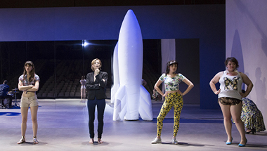 Fin de la première partie, prologue à la seconde. Et si nous pensions avoir tout vu, c’est raté ! Sur le plateau désormais nu avec pour seul décor un miroir au lointain – cela a son importance car, pauvre de nous, nous y sommes réfléchis – déboule une ronde joyeuse d’hurluberlus qui vont décliner « les cinq libertés essentielles à l’individu ». Et Martin Crimp est impitoyable dans cette peinture au vitriol de notre société contemporaine où l’individu est écartelé entre son besoin d’émancipation, son désir forcené d’épanouissement personnel et sa volonté bornée d’appartenir à un groupe, de faire avec les autres malgré tout, malgré eux. Portrait d’une société aveugle, morte de trouille, qui danse sur ses illusions où le désir d’harmonie est aussi forcené que vain. Martin Crimp, avec un humour noir féroce et un sens de l’absurde décapant, essore la société et les individus qui la composent. Surtout il met à jour la mécanique complexe et délicate de notre réalité qui oscille entre aveuglement et lucidité, l’équilibre instable sur lequel nous balançons. Ce que nous refusons de voir.