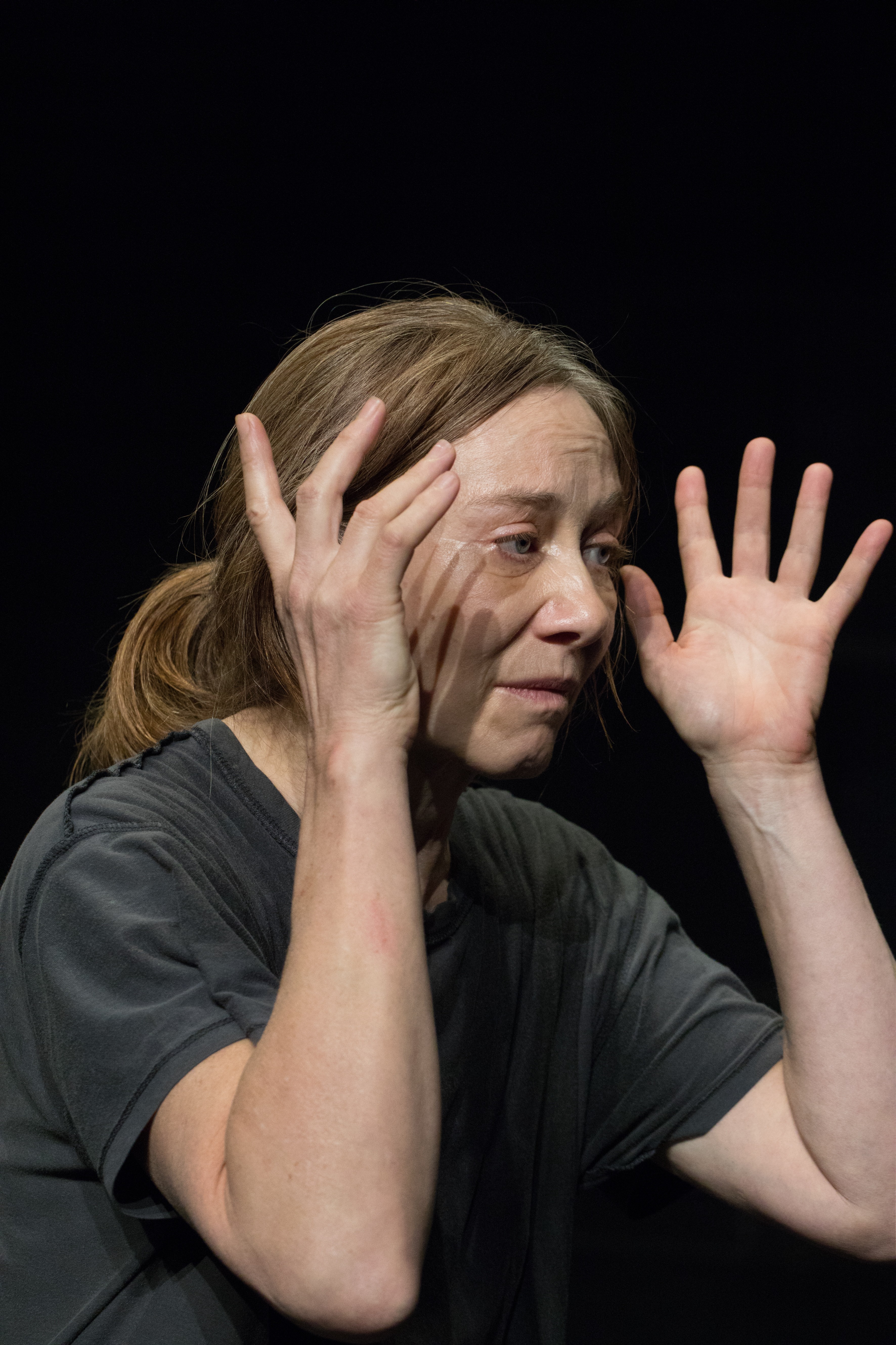 Et c’est ce qui bouleverse dans la seconde proposition et non des moindres, appréhender le mythique solo de Pina Bausch, dans Café Müller. Appréhender, improviser autour de cette partition, on se dit qu’il y a péril en la demeure. Et ce qui se passe soudain sur le plateau est une déflagration. Reprenant à son compte, non la danse elle-même, mais son évocation, quelques mouvements de bras, Valérie Dréville redevient la tragédienne inouïe qu’elle sait être. Sur le plateau surgit Phèdre, Bérénice, Médée. Et c’est si fort ce qui en découle, nous laissant pantois, que Valérie Dréville craque et finit en pleurs. L’émotion dans la salle est palpable. Et ce qu’elle explique suite à cela c’est que cela tient à l’écriture, les mots qu’elle mit sur les images de ce solo de Pina Bausch, comme des outils nécessaires pour rendre tangible les émotions les plus ténues. « En tragédie, les personnages sont comme des transformateurs qui nous purifient » dit-elle. Le corps engagé participe donc aussi de la catharsis.