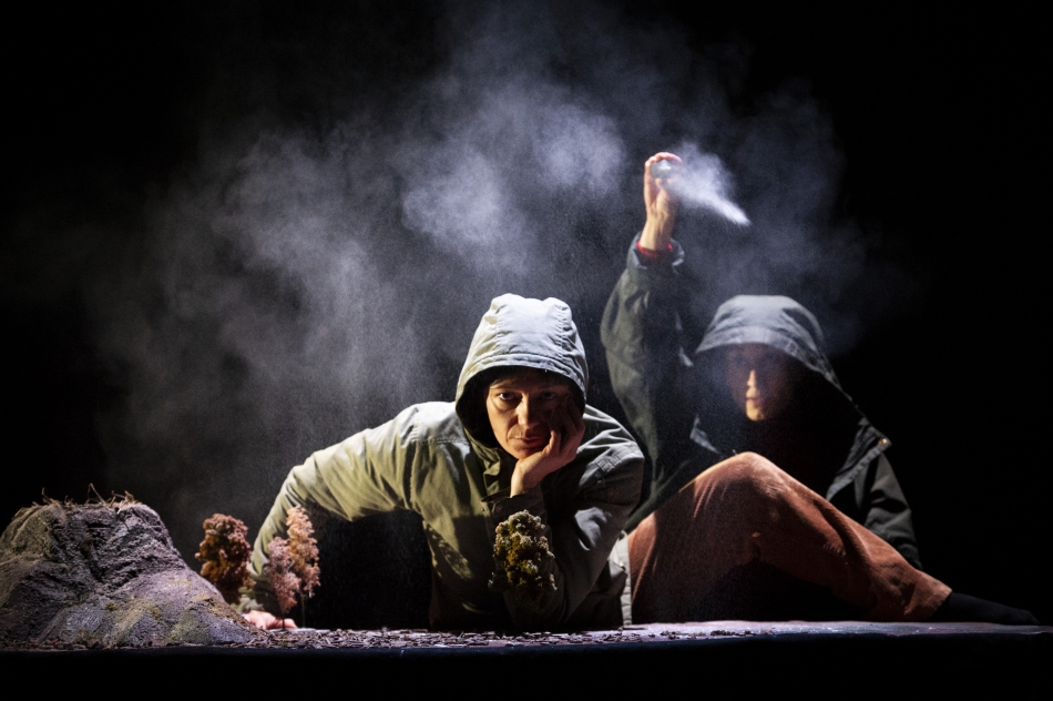 Bon dimanche ! Trois reporters animaliers parcourent la planète pour filmer les espèces en dangers. Confrontés aux dérèglements climatiques, fonte des glaces, ouragan et tsunami, ils seront, chacun leur tour, les premiers à disparaître… Pendant ce temps-là, ignorant superbement l’apocalypse qui s’annonce, une famille s’apprête à passer un dimanche à la maison. Il fait chaud, la canicule s’installe. Tout bientôt fond dans la maison jusqu’aux pales du ventilateur. Qu’importe, la vie suit son cours. La tempête fait rage, un vent furieux s’engouffre, fait trembler les murs, emporte tout et les occupants peinent à résister. Qu’importe on fait avec, on fait comme si. Les océans débordent, la maison est engloutie, les poissons traversent désormais le salon. Qu’importe ça n’empêchera pas le réveil de sonner. C’est follement absurde et terriblement drôle. C’est une merveille d’intelligence, d’invention et de poésie. Et pourtant le message est clair, l’apocalypse a bien commencé. Et oui, c’est une création ouvertement écolo, made in Belgique. La compagnie Focus et la compagnie Chaliwaté se sont associées pour le meilleur et pour le rire. Théâtre gestuel, d’objets, de marionnettes. Ils sont acteurs et manipulateurs, as du bricolage en tout genre. Vidéastes, aussi. Ce qu’ils offrent sur le plateau est proprement ébouriffant et brasse l’artisanat avec la high-tech. Les objets ici, même les plus anodins, ont une âme insoupçonnée et de surprenantes métamorphoses. Les marionnettes sont hyperréalistes, à taille réelle et l’effet est saisissant, troublant même. On ne peut oublier cette imposante ourse polaire et son ourson qui symbolisent à eux deux la catastrophe qui s’annonce. La force de cette image, fulgurante dans sa brièveté, juste un bout de banquise qui se rompt éloignant le petit de sa mère endormie, le hurlement désespéré de celle-ci… Jouant également des perspectives, des différentes échelles, nos reporters en sursis semblent traverser des espaces infinis et oniriques, fragiles, ou parfois leur corps même font partie du paysage. Un corps étonnamment plastique qui donne toute sa mesure dans le burlesque, corps contraint de fait par les éléments déchaînés et l’imprévu des évènements qui les oblige à de sacrées contorsions. Tout est très soigné dans cette création, un grand souci du moindre détail, jusqu’au son lui-même qui participe de cette ambiance parfois, malgré les fous-rire, quelque peu anxiogène. Le bruit de la glace qui craque sous leur pas avant de s’effondrer, le bruit infernal du vent qui finit par rendre fou, jusqu’au final, ce tsunami qui semble déferler du plateau, brutalement plongé dans le noir, jusque dans la salle ; rien que ce son-là, amplifié, terrifiant dans cette obscurité, nous l’avons longtemps après dans l’oreille. Et avec un sens du raccourci qui vaut mieux qu’un long discours, une longue démonstration, la toute dernière image de cette création – nous n’en dirons rien – dans sa radicalité vous laisse pantois, augurant d’un avenir pas très réjouissant.