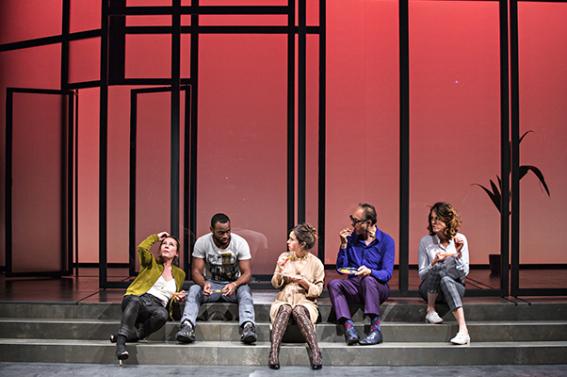 Eh bien… comment dire… bon… débutons par les deux acteurs et trois actrices, qui ne s’en tirent pas si mal, qui savent jouer, tenter de donner un peu de sens à leur texte, pour qu’une ou deux fois on puisse se dire que non, ce n’est pas un spectacle de fin d’année d’élèves de secondes que nous sommes sympathiquement venus voir… Ici où là il y a un petit rebondissement, on peut se mettre à penser et cesser d’imaginer quelles plantes vertes nous pourrions glisser dans le décor ou comment deux ou trois chats rebondiraient après des courses folles pour essayer de lacérer les rideaux. On se dit qu’un Starky et Hutch, ce soir, vraiment, aurait été plus profond. Ou un Dîner en ville alors, pourquoi pas, mais un vrai, un bon !