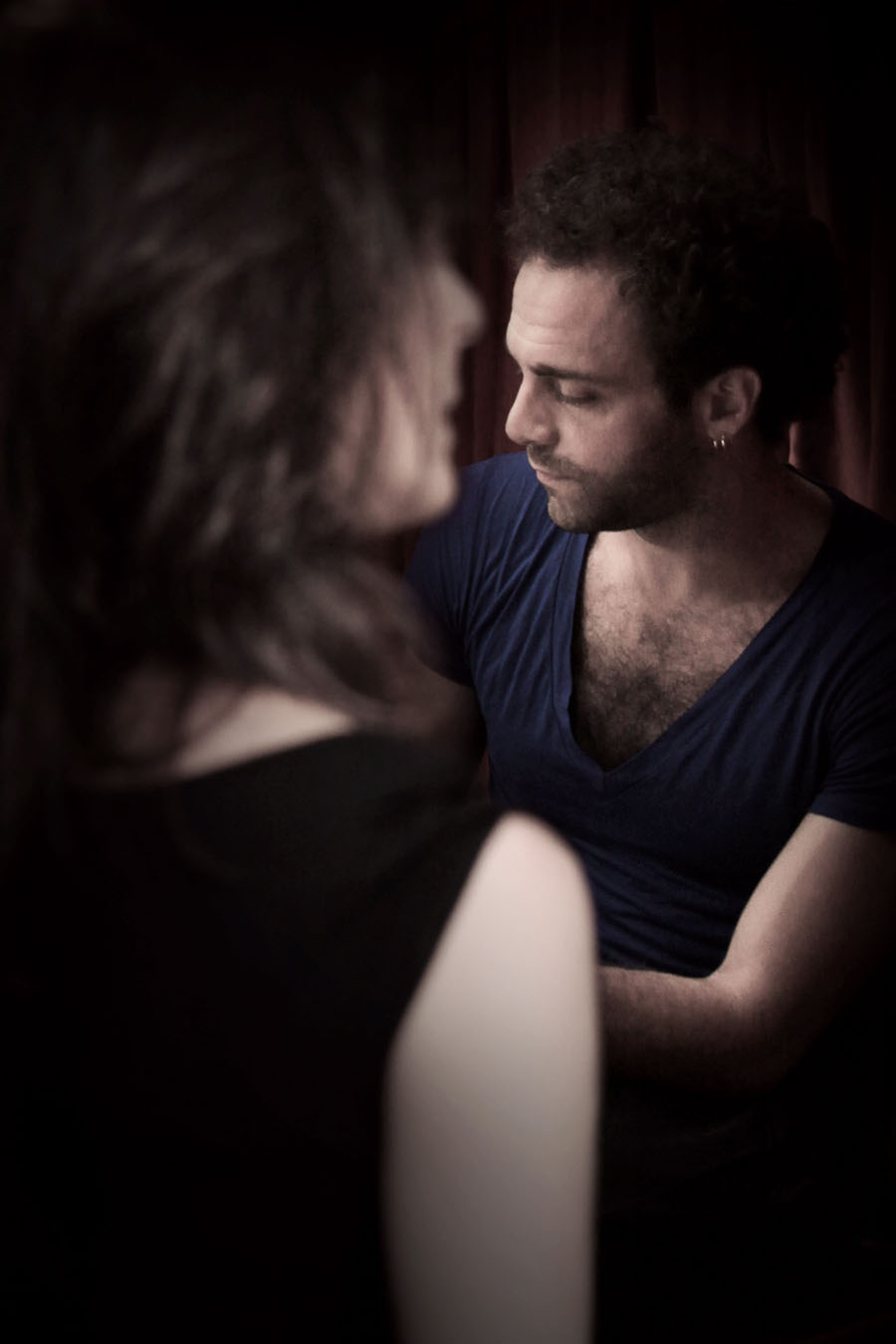 Mettre en scène Dom Juan dans le petit théâtre de l’Atalante est un choix qui s’inscrit dans l’axe de travail que poursuivent depuis plusieurs années Alain Barsacq, Agathe Alexis, et la compagnie de René Loyon, à savoir celui d’un Théâtre de Chambre. Ainsi ils permettent à de grandes œuvres du répertoire d’être jouées dans un rapport de proximité avec le public. Leur volonté est de se débarrasser de la convention déclamatoire et de solliciter l’attention du spectateur de manière neuve, dans l’intimité, la confidence, redonnant ainsi un nouvel éclat aux textes classiques. Un pari particulièrement intéressant dans le cas de Dom Juan, pièce dans laquelle l’action ne cesse d’évoluer dans des décors différents: palais, bord de mer, forêt, appartement, etc. René Loyon a résolu la question très simplement en construisant un décor unique avec quelques vieux meubles. D’un côté, un petit salon, de l’autre, une chambre. Dans ce huis clos, l’action se déroule et les personnages défilent. « Le décor devrait être comme ces tapis orientaux aux arabesques entrelacés qui permettent à l’imagination des enfants de se donner libre cours, faisant surgir château, forêt, plage, précipice… ».