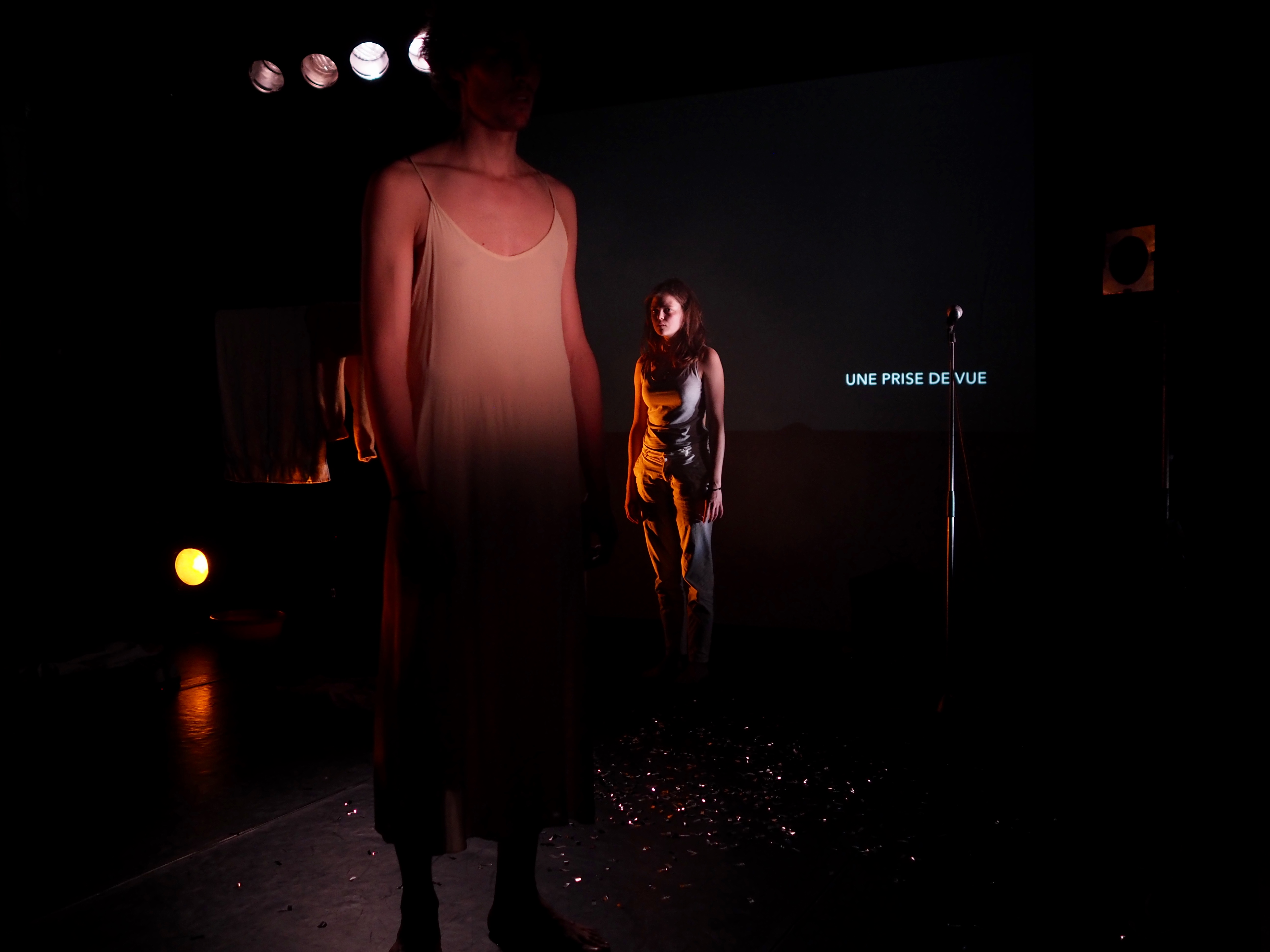 Qu’est-ce que le théâtre ? La question pourrait écraser, être reléguée aux affaires académiques, ou au contraire passer pour tellement évidente que certains jugeraient inutile de s’y arrêter. De façon détournée mais profondément enthousiasmante, Camille Dagen ose la poser et tente avec nous d’y répondre par une ludique et sensible expérimentation. Durée d’exposition est conçu comme une performance pour une comédienne et un comédien obéissant au modus operandi de la photographie argentique : son mode d’emploi s’affiche sur un immense écran vidéo en fond de scène,