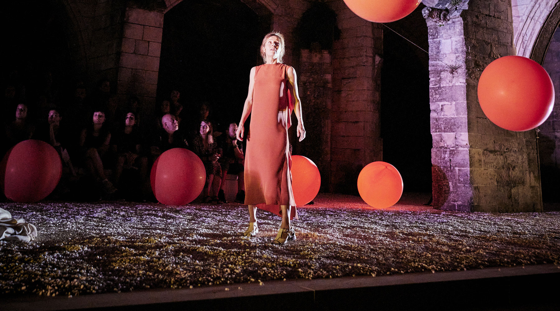 Écrire sa vie sonne comme une injonction, comme un ordre. Pauline Bayle et sa troupe s’y engagent, portant haut et fort le verbe woolfien, dans une urgence qui emporte le morceau. Le spectacle se construit très majoritairement à partir du roman Les Vagues de Virginia Woolf, et l’on reconnaît sans peine la traduction de Marguerite Yourcenar qui possède ce flow (au détriment peut-être de la fidélité à l’original) qui porte si bien et si loin la parole dans l’espace. Six amis se retrouvent pour fêter le retour tant attendu de Jacob (Perceval dans le roman, les noms ont été changés dans cette adaptation) qui n’arrivera jamais. Pré texte, sous texte, cette absence creuse un manque, un désir, d’aussi loin qu’il leur en souvienne, jusque dans la forêt de leur enfance. Écrire sa vie emplit de profusion ce vide qui les consume, qui nous étreint, est plein de mots en l’air (mais jamais, au grand jamais, ils ne sont vains), comme autant de feux d’artifice. C’est beau et sans que l’on en comprenne la mécanique c’est bouleversant, car la poésie s’affranchit des récits, s’abstrait de la narration, comme on sortirait d’un mauvais rêve, pour nous plonger dans un état de pleine conscience. D’histoire il n’y en a presque pas, et c’est comme un poids en moins pour peu que l’on accepte de lâcher cette bride, qui est aussi une œillère dans notre relation au monde. Les lumières impressionnistes et l’espace, d’un visible ouvert sur l’invisible, essaimé de ballons rouges pareils à des bulles d’air venant éclater à la surface du réel, nous accompagnent souplement dans cette traversée. La puissance du dire, démiurgique, a le pouvoir du faire, de réagencer les atomes de l’existence. Le théâtre est le lieu des miracles nous dit Pauline Bayle projetant avec foi l’écriture de Virginia Woolf dans son dispositif spectaculaire. Écrire sa vie performe la vitalité des mots, fabrique des mondes à la force du poignet de l’écriture. Les phrases nous parviennent comme autant d’embardées, nous remuent, comme si nous-mêmes n’étions faits que de mots que ces six acteurs créateurs auraient le pouvoir de baratter. Même s’ils ont encore la jeunesse pour eux, ils ont tous les âges de la vie, comme le texte de Virginia Woolf. Ces diseurs de mots sont les diseurs de la bonne ou mauvaise aventure qu’est la vie dans laquelle ils sont, nous sommes, embarqués. Crier qu’on est libre, puis crier qu’on ne l’était pas. « Le sens passionné de l’existence » est de chaque instant, tumultueux, et tient entre ces deux cris.