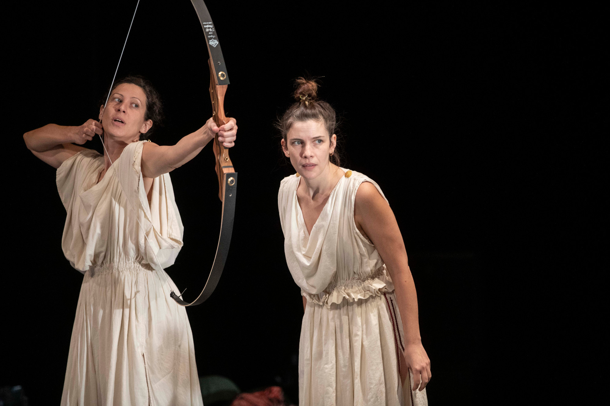 Tentons de résumer bravement cette création en allègre panique qui tire à bout portant, à bout touchant sur les maux d’une humanité en déroute anthropocène. Femmes au bord de la crise de nerf, au bord du burn-out, esclaves d’un patriarcat, écrasée d’une charge mentale jusque dans ses idéaux. Femmes fatales soumises aux injonctions de mâles soumis aux injonctions, eux aussi, du même patriarcat. Un Bernard en déroute genrée. Végan dépressif et entrecôte trop cuite. Ecolos en proie au doute. Ours polaire atteint de solastalgie. Trois Parques. Un arc. Enfants en révolte devant un avenir hypothéqué, tuant le père et pas que symboliquement. Passons, passons, passons. Rien du pensum pourtant, c’est encore une fois d’une alacrité inventive qui sauve de la pesanteur, mené tambour battant et grand sérieux dans la farce tragi-comique par ce collectif décapant et engagé, labélisé par nos soins d’utilité publique. Au sortir du théâtre de la Bastille, une envie furieuse de pousser un cri démange, celui-là même qu’il pousse en chœur à intervalle régulier, harmonieux et libérateur dit-il. Libérateur, c’est certain.