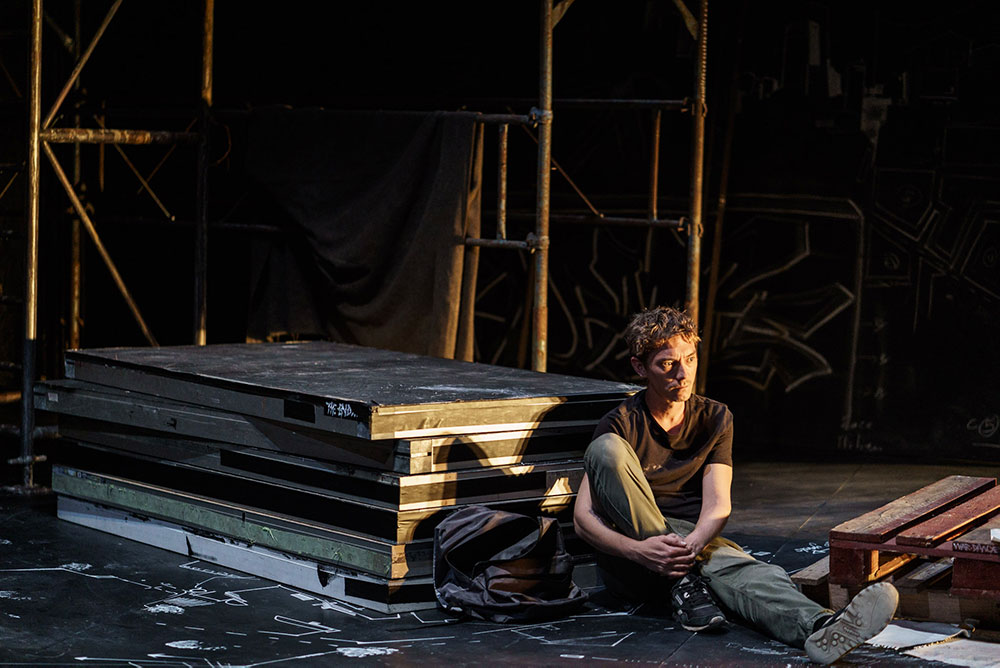 C’est au tour de Swan Arlaud, toute en pudeur et habité par la déroute de son personnage de nous livrer la confession de ce dernier survivant d’une guerre civile. Le texte est tissé dans un langage poétique et cru, serti d’anglais, très intéressant pour décaler le propos mais aussi en faire jaillir toute la force. Le jeu de Swan Arlaud ne manque pas de relief, mais il semble qu’il y manque une petite étincelle pour que le feu s’embrase entièrement. Peut-être la mise en scène hésite-t-elle trop entre illustration et allégorie ? Quoiqu’il en soit, cette déclaration de guerre à la guerre reste d’actualité et si elle manque un peu notre corde sensible elle réveille certainement notre humanité.
