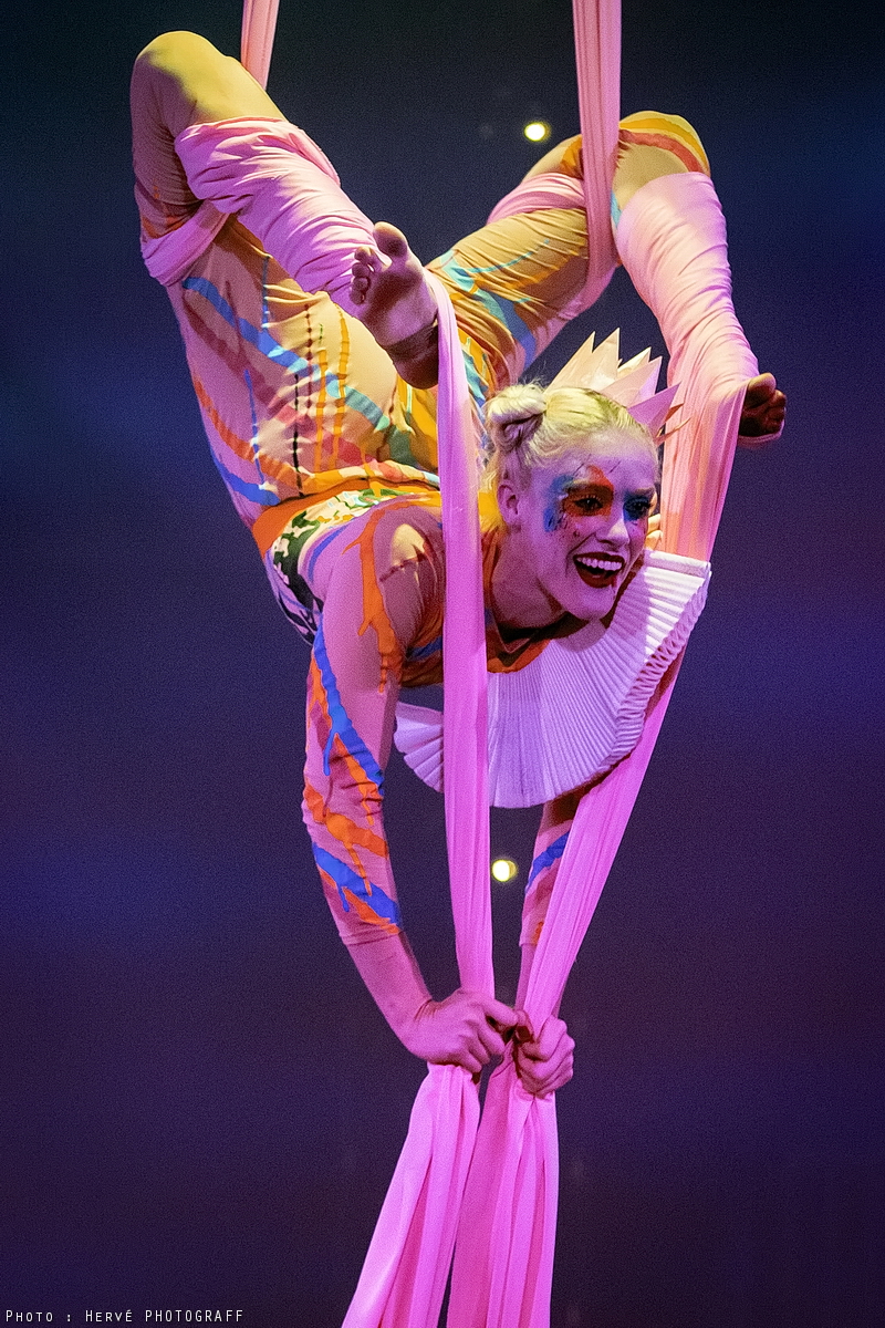 Il y a des « ho ! » des « ha ! » dans les gradins. On pourrait dire en sortant de là que c’était amusant et agréable à voir. Certes on en ressort couverts de confettis, des pop-corn ont circulés, le jeu était partout. Oui. Mais ce jeu était sous tension, avec des infos pour les gamins de trois ans et d’autres pour les adultes. On ne voyait pas la même chose, on était tous attrapés ! Les vibrations se perçoivent, nous avons sous les yeux une concentration tangible, la fascination est là. Les artistes se suivent comme dans un cirque « classique », la souplesse et la gaité se mêlent. Une sorte d’unité, d’union plutôt, est évidente, tenue par cette musique resplendissante. Pas une once de prétention, perceptible ici où là parfois, ailleurs. Ces artistes se sont lancés dans les méandres complexes du cirque, avec tous les « plus » du Cirque Électrique. Le travail est là, devant nous. La tension positive, la volonté de nous faire partager. Une toute petite « peur » est visible, de temps en temps, un très léger frisson remballé tout de suite. Nous l’avons vu tout de même et applaudissons plus fort encore. Tout se mesure, se pèse, que les risques seront vaincus, brillamment, pour nous, rien que pour nous. Et donc lorsque les applaudissements ont cessé, qu’il faut redescendre sur terre, le résultat est étonnant : il épouse une certaine permanence, nous restons époustouflés dans le métro. Les images nous habitent. L’amour de leur métier se perçoit et nous éclabousse.