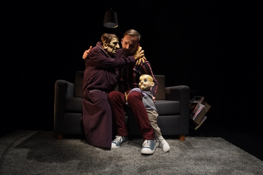 Fastoche estadapté du texte de l’auteur finlandais Laura Sillanpää. C’est un solo porté par un seul comédien marionnettiste qui incarne, à lui seul, trois personnages à la fois. Un exploit permis par la marionnette, forme dramaturgique qui ouvre de multiples possibilités de représentation. C’est à travers deux marionnettes portées – fabriquées par l’artiste Polina Borisova – que se matérialisent les projections mentales de Jonathan, Le vieillard et le gamin. En alternant des moments musicaux, avec un très bel accompagnement au piano de Guillaume Hunout et les chants de Pierre Tual, des gags burlesques et des scènes au registre plus mélancolique, Fastoche instaure un bel équilibre entre le drame et la comédie. Issu de l’École Nationale Supérieure des Arts de la Marionnette de Charleville-Mézières, l’interprète marionnettiste Pierre Tual parvient à articuler manipulation, jeu et chant dans un même mouvement, fluide et naturel. Grâce aux moments musicaux, où il pose délicatement sa voix sur les notes mélancoliques du piano, une dynamique s’installe durant tout le spectacle. Alors que des longueurs auraient pu se faire ressentir, travers dans lequel un solo peut facilement tomber, la mise en scène construit un rythme enlevé, ne laissant jamais le spectateur s’ennuyer. Il ne décroche pas de l’illusion marionnettique qui s’impose à lui, principalement de par la qualité de la manipulation du comédien. Mais c’est aussi grâce à la crédibilité de son personnage, qui évite soigneusement les stéréotypes. Jonathan est une sorte d’anti-héros, d’homme ordinaire auquel le spectateur s’identifie très facilement : c’est le « looser gentil » de qui on aimerait être l’ami, à l’image du héros de The Big Lebowski, naviguant entre l’enfance et l’âge adulte. Il permet d’approcher en finesse le thème de la maturité, de l’accomplissement personnel dans les sociétés occidentales. Il témoigne de ce que chacun y vit, à un moment ou à un autre, tiraillé entre l’affection et les exigences familiales, les pressions sociales et les voix discordantes du moi. Fastoche montre combien les arts de la marionnette sont sources de créativité, apportant un point de vue nouveau sur des sujets dans lesquels s’enlisent beaucoup de productions culturelles.