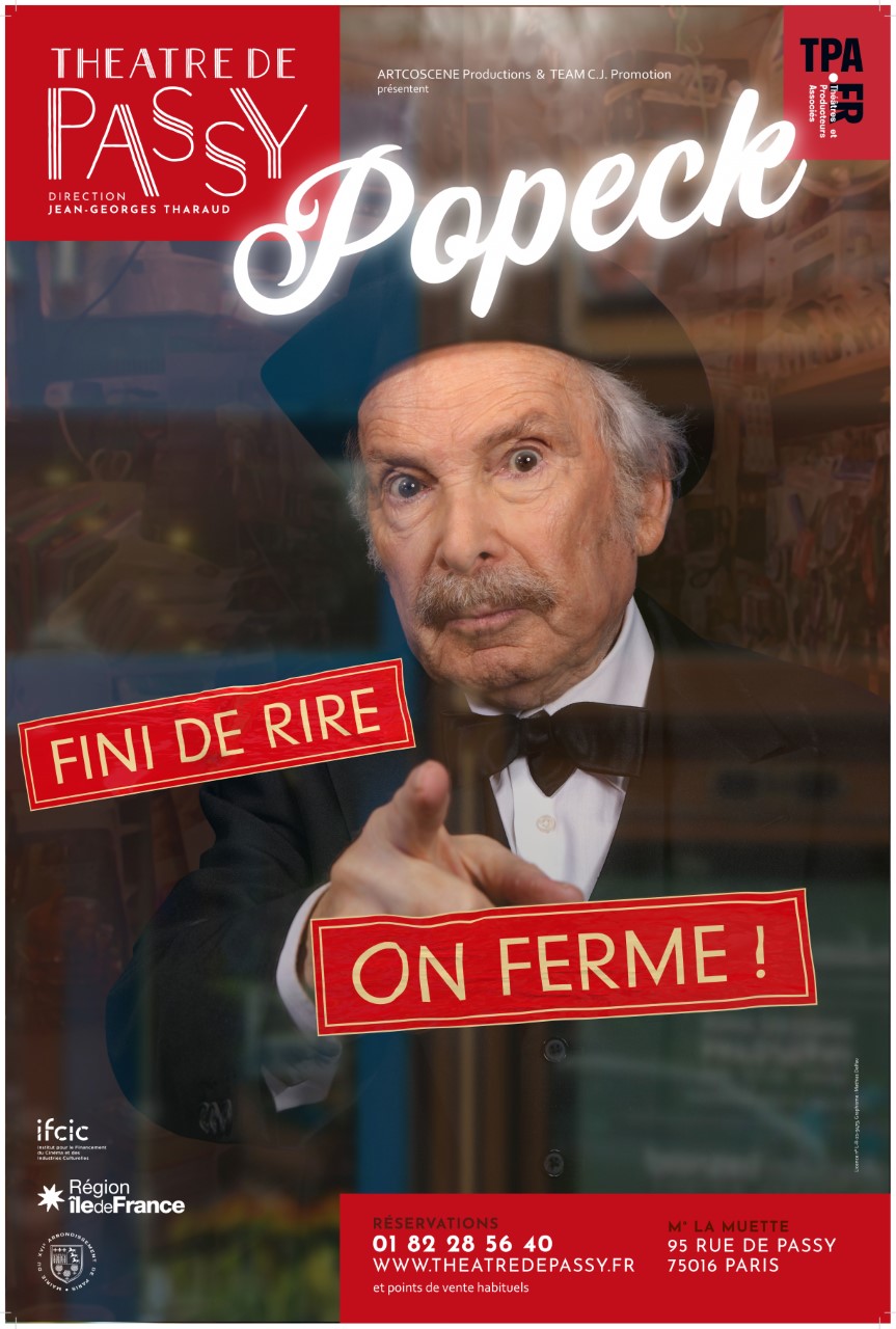 A 87 ans, Popeck le promet : Fini de rire, on ferme ! En effet, comme il le rappelle en début de spectacle, l’humoriste a largement dépassé la date de péremption. Qu’on se rassure toutefois : en 2015, il jouait C’est la dernière fois !, avant d’affirmer deux ans plus tard J’irai jusqu’au bout ! En 2019 il revenait à la charge avec un fort lucide Même pas mort ! Gageons donc que cette « fermeture » ne constitue que le début des derniers adieux de l’artiste – et on ne peut que s’en réjouir.