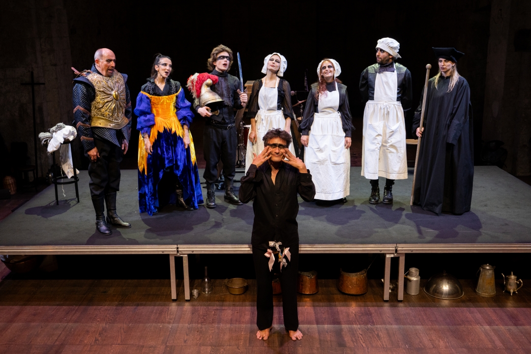 Et pour le lecteur, l’exubérance de la langue n’a d’égal que l’opulence fantasmée de toute ripaille où les litres de vin disputent au nombre de bœufs, faisans et autres sangliers rôtis, braisés ou fumés. L’abondance des mets est l’analogie de la profusion des vocables. Tout est abondant et riche comme dans une fête païenne. C’est dès lors un amusant clin d’œil que Muriel Mayette-Holtz envoie à ses spectateurs en proposant cette création dans la salle des Franciscains (ancien couvent du XIIIème siècle qui fut utilisé depuis la Révolution comme écurie, boîte de nuit et cinéma) du Théâtre national de Nice en cette période de l’Avent !