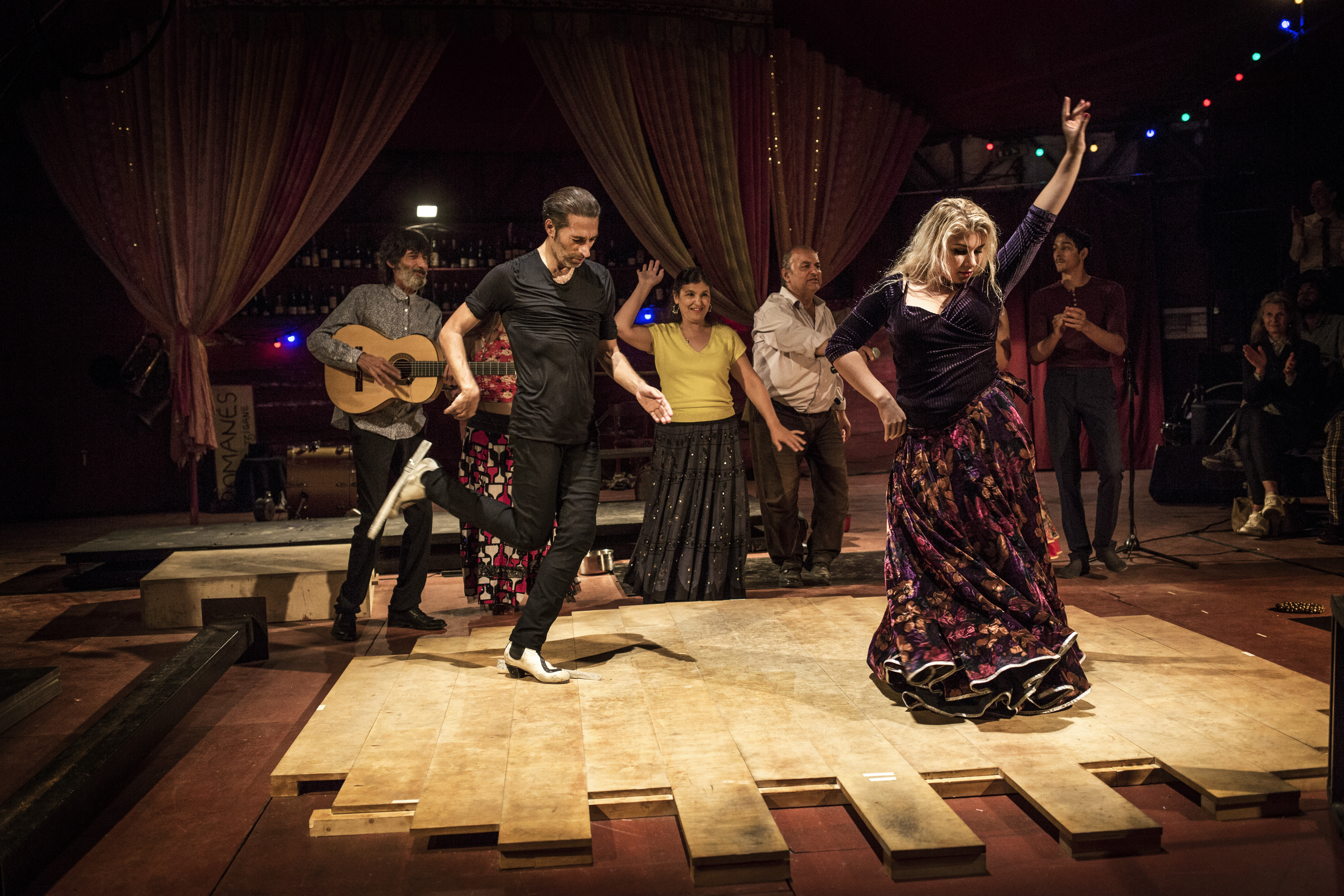 Avec Israel Galvàn (danse), Caracafé (guitare), Délia Romanès (chant), Alexandre Romanès (poète, récitant), Alexandre Romanès (tissus aérien et trapèze), Rose-Reine Romanès (danse), Irina Romanès,(Hola-Hoop), et les chats du cirques Romanès