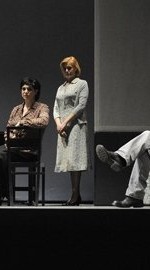 Luca Ronconi signe une superbe mise en scène d’une grande sobriété mais également d’une grande précision. Bien que l’ensemble soit plutôt statique, chaque mouvement, chaque déplacement semble faire partie d’une chorégraphie. Dans un espace limité, le décor est constitué de trois fauteuils, une chaise et une table. Au dessus du plateau un écran indique le numéro des scènes. Les comédiens, avec un immense talent, portent les mots de Jean-Luc Lagarce, autant avec leurs paroles que leurs corps et derrière un calme apparent semblent être animés d’une violence intérieure. Il n’y rien d’inutile, rien de trop, tout est simple et juste.