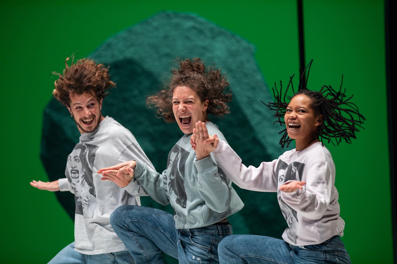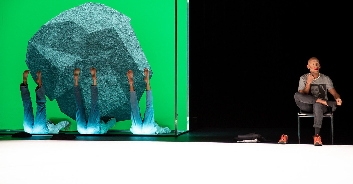 Grand Crié fait écho bien sûr au grand jeté du ballet classique, ce saut avec grand écart particulièrement spectaculaire. Dans son titre même, Nicolas Barry joue donc des références comme on jouerait des coudes, instituant une nouvelle catégorie qu’il crée avec un brin d’ironie. Le cri, s’il renvoie à une certaine matière sonore, vocale, sera ici pris plutôt dans ce qu’il exige et révèle du corps, du visage, dans leur expressivité écartelée entre l’émotion qui lui donne naissance et le travail musculaire qu’il met en jeu. Le ressort et l’effort. Trois danseurs, un musicien, et Nicolas Barry sont au plateau, servis comme sur un plateau. Carré blanc, quelques chaises, un collier de perle. Ils seront muets, ils seront, mieux dit, parlés par une bande son, voix enregistrée ou opéra. Ils seront les électrons mis en mouvement par un courant vocal. Ce parti pris, s’il renvoie à l’esthétique drag, creuse un vrai sillon sur la durée et procure in fine l’étrange sensation que le spectacle même est ventriloque, cette dissociation des corps et du son, alors même qu’ils sont raccord avec une réelle virtuosité, ouvrant une sorte de néant post-moderne. Si Grand Crié marque, ce n’est pas tant par certains gestes queer, que par sa singularité d’écriture et de montage jouant de l’instabilité, de l’hétérogénéité, de ses éléments, osant même un magistral long silence avant de clore. Nicolas Barry travaille dans son cabaret laboratoire hétéroclite une pensée sauvage réarticulant le monde sensible.
