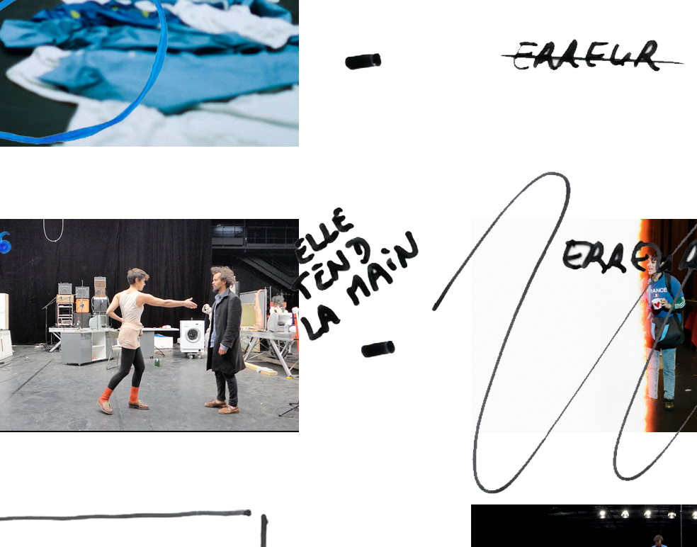 Grande —, joie, bonheur et prospérité, Tsirihaka Harrivel, Vimala Pons, du collectif Ivan Mosjoukine, presque rien d’autre à dire que merci, mais ce serait un peu court pour une critique. On arrive d’abord dans cette salle qui paraît immense, avec, pardonnez-moi, un bordel consciencieux sur scène, très rangé en fait. Suivant quatre rangées, des dizaines d’objets, poupées, sacs en plastiques, cuisine ou machine à laver, bombes à confetti pour quand le temps sera venu, un bloc électro qui sera joué en direct, des ondes d’énergie en plus, des fois qu’il en manquerait…