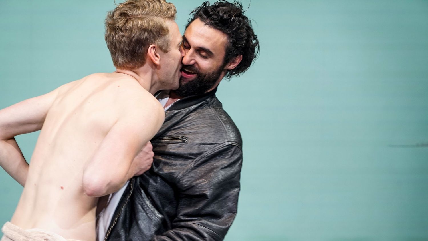 Si les scènes avec Réda (Renato Schuch) et Edouard Louis sont les plus réussies de cette mise en scène, sortant d’une vision clinique pour une véritable émotion dramatique jusque dans l’éruption de la violence, le viol, on reste dubitatif, voire franchement sceptique, par la façon de camper les autres personnages de façon aussi volontairement caricaturale. Pourquoi de la sœur (Alina Stiegler) avoir fait cette cagole en léopard et de son mari (Christoph Gawenda) ce beauf, chaussettes dans des claquettes, survêtement et marcel ? Mention spéciale pour la mère, campé par un homme, pas très loin des caricatures des Monty Python. Certes le propos de Clara envers l’évènement et de Louis est le fruit des préjugés de sa classe (déterminisme, homophobie…). Fallait-il pour autant et pour appuyer un discours et au-delà une thèse juste charger autant la barque, en faire des clichés rebattus ? Ce qui pourrait être drôle et créer une distance dans un autre contexte (et encore) s’avère franchement ici lourd et certes pas naïf, franchement hors de propos. Le récit de Clara, aussi artificiel comme procédé (et cela saute encore davantage aux yeux sur le plateau) que dans le récit initial s’en trouve quelque peu désamorcé, décrédibilisé, soumis au ridicule. Alors même que la violence sociale prend également sa source ici, dans ce milieu-là, dans la parole de Clara, constitutive d’elle-même et de sa classe sociale et ce déterminisme têtu. Dans le récit initial, seule la parole la déterminait. Confronté à la scène et dans cette perspective qui se voudrait ludique le propos se dissout dans l’image donnée. Il était sans nul doute inutile d’en rajouter. N’y aurait-il donc que la parole d’Edouard Louis qu’il faille mettre en valeur ? Si on peut adhérer à sa thèse, et nous y adhérons, ce n’est pas accepter une certaine complaisance, un certain narcissisme autocentré de l’auteur que la mise en scène involontairement, ou non, accuse. C’est ça qui nous titille, nous interroge au sortir de cette création au demeurant impeccable et bien plus réussie que Le retour à Reims de Didier Eribon monté récemment par le même Thomas Ostermeier et qui en serait comme le pendant, second volet d’un diptyque mettant en parallèle deux générations confrontées à la même problématique, racisme, homophobie, violence de classe, politique, mais dans un contexte aujourd’hui différent. Ce n’est pas occulter le traumatisme de l’auteur, ignorer sa résilience, ne pas reconnaître son talent, mais refuser un procédé qui éclipserait ou dénaturerait à son seul profit ceux qui ont fait paradoxalement Edouard Louis et l’énoncé de son discours. Il y a là dans cette caricature affichée (Clara, sa mère entre autre) quelque chose de malhonnête ou de maladroit voudrait-on croire. Ce que nous aurions aimé voir, et on l’aperçoit un peu trop brièvement, c’est Eddy Bellegueule plus qu’Edouard Louis. Seule, et c’est difficile sinon terrible à dire, la scène du viol et ses conséquences confrontent Eddy à Louis, l’homme à son avatar, et accuse les limites de cette réinvention de soi, quelque part douloureuse, soudain confrontée face à Réda à la réalité, le renvoyant à ses origines obstinément niées, elles aussi au final réinventées. C’est flagrant ici. Mais la violence naît aussi de là, de cette confrontation sans fard avec ses origines et de cette incompréhension des deux qui ne se reconnaissent pas ou ne veulent ni ne peuvent se reconnaître. Edouard Louis est victime de sa propre violence, celle des déclassés, des transfuges que la honte insidieuse parfois aveugle. Ce viol pas même symbolique est la clé tragique du dilemme d’Edouard Louis qui visiblement n’en a pas fini avec Eddy Bellegueule.