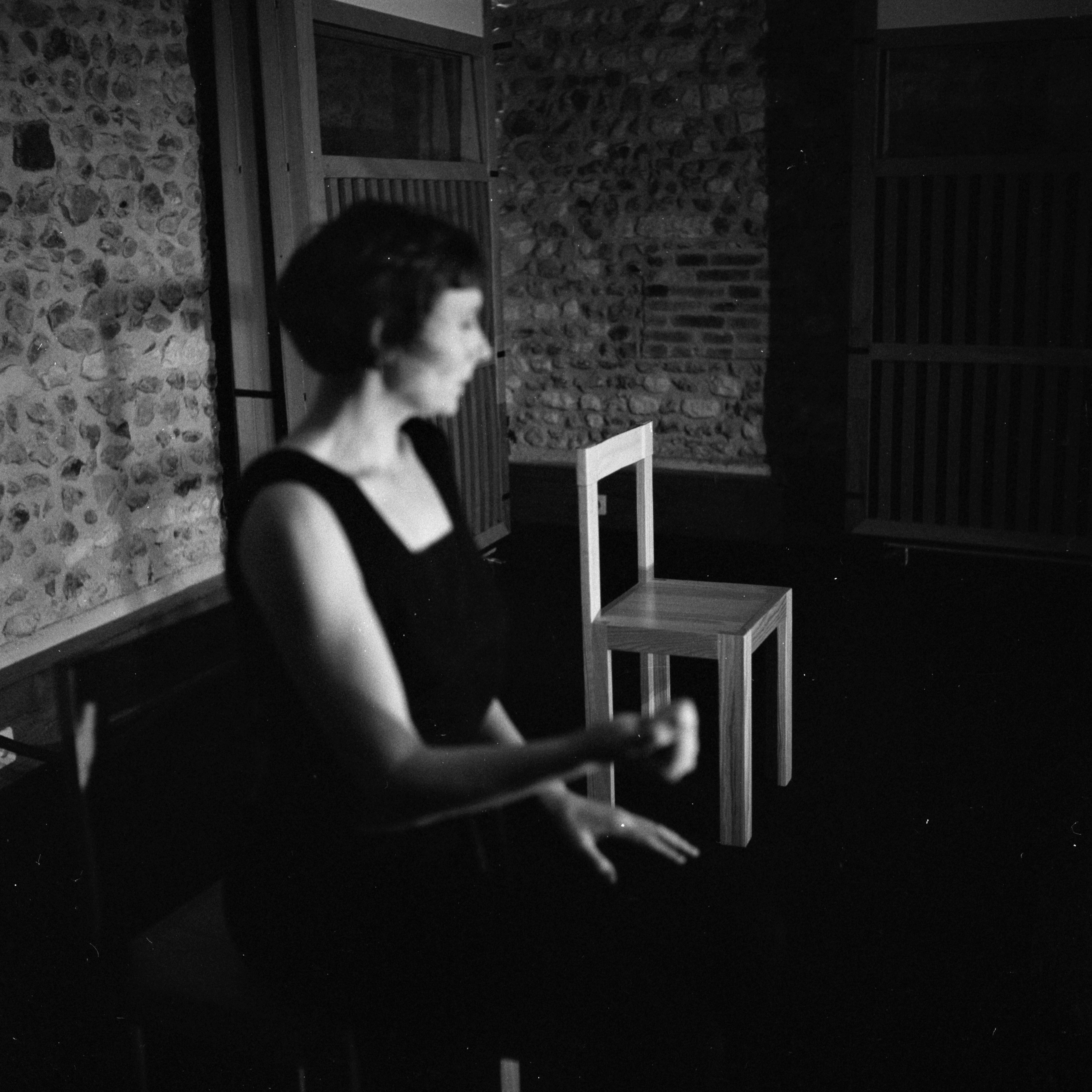 Deux chaises à cour et jardin, comme les deux plateaux d’une balance de Justice, avec en son centre et pour fléau, Claire Théodoly. Droite et fichée au sol comme un glaive, la parole tranchante, elle dit Horace, un texte d’Heiner Müller. Vingt-cinq minutes d’une incroyable densité. Pour avoir vaincu en duel un Curiace et sauvé Rome mais tué sans nécessité et dans un accès de colère sa propre sœur fiancée au Curiace, Horace est à la fois glorifié, héros vainqueur et légitimé par le pouvoir, et condamné pour ce crime. Jugement flexible, l’assassin et le vainqueur ne faisant qu’une seule et même personne. Mais ni son crime ni son mérite ne seront passés sous silence. Heiner Müller expose la dualité de l’homme, son héroïsme et sa monstruosité, se refusant à tout manichéisme, acceptant l’antagonisme inhérent en chacun. Avec cette interrogation, que retenir au regard de l’Histoire d’un jugement, populaire ou judiciaire, quand l’héroïsme et l’innommable s’avère indissociable de l’homme ou d’une société. Et cette réponse implacable :« Mortel à l’homme est le méconnaissable. »