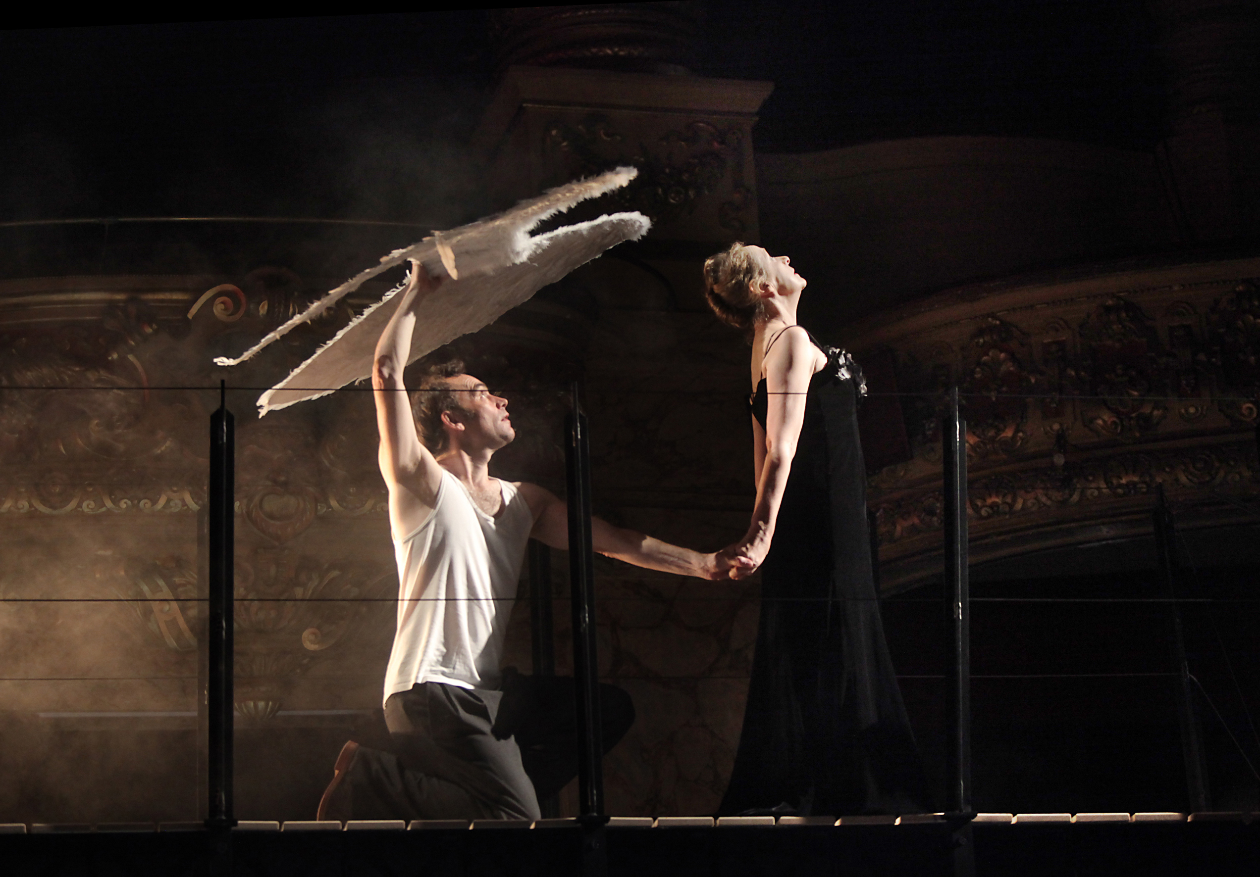 Reprise de la pièce de Jean-François Sivadier Italienne Scène et Orchestre et ça c’est une chouette idée, un vrai bonheur. Pour qui aime l’opéra et pour qui le déteste c’est l’occasion de découvrir les vrai-fausses coulisses d’une répétition, La Traviata de Verdi, de participer à l’élaboration laborieuse d’une mise en scène sous la houlette de Nicolas Bouchaud, au premier abord hystérique, lunaire et totalement cintré, d’entrer dans la fosse aux lions où rugit un chef d’orchestre qui vous mène à la baguette, Jean-François Sivadier lui-même, cafouillant des blagues avec un accent improbable. C’est la guerre totale, ouverte, des egos. Entre le plateau et la fosse, entre diva et divette. Contraintes d’un planning serré, contraintes techniques, contraintes syndicales, caprices et retards ajoutent aux conflits qui explosent ou menacent d’exploser. Chacun y met du sien entre bonnes et surtout mauvaises volontés qui transforment cette italienne, ce working progress, en champ de bataille lyrique et théâtral. Enfin comme le résume si bien le metteur en scène  « C’est pas qu’on patauge, c’est qu’on remonte le fleuve Yangtsé à la rame. » Ce qui aurait pu être un chapelet de situations et de portraits caricaturaux, de poncifs, est au contraire d’une rare et belle subtilité. Hommage à l’opéra et au théâtre, à ceux qui le font, de la diva au technicien, à leur fragilité et leur faiblesse, c’est une leçon magistrale sans être didactique sur un art qu’on souhaiterait populaire. « Vous devez jouer pour celui qui ne sait rien, qui vient à l’opéra pour la première fois. » Doucement les masques tombent et toute la complexité des personnages, loin de toute caricature dont se joue au début, pour mieux s’en débarrasser ensuite et avec malice, Jean-François Sivadier, apparaît. Au-delà de la situation c’est une réflexion magistrale et profonde sur l’art du comédien, de la mise en scène, de la musique, qui au long de cette création s’affranchit du fatras de clichés qui accompagne ordinairement un art au final méconnu. Et le rire fait place parfois à l’émotion quand craquent les certitudes des personnages à la recherche d’une vérité, d’un absolu, dans un monde qui n’est, en apparence seulement, qu’illusion, ou la fiction rejoint parfois et non sans danger la réalité. Derrière les conflits et les caprices, les logorrhées soudaines, c’est la peur qui vous cloue sur le plateau. Et l’intelligence de Jean-François Sivadier c’est de nous faire entrer de plain-pied dans ce processus de recherche et de réflexions. Attendus comme choristes c’est, dans la première partie, sur le plateau que nous nous installons, intégrés à la mise en scène, pris en charge par l’assistante et doublure dévouée. Avant dans la seconde de descendre, soudain musiciens, dans la fosse d’orchestre, attendu d’une baguette ferme par Jean-François Sivadier. Changement de perspective, mise en abîme vertigineuse qui fait de chaque spectateur un acteur légitime et surtout engagé et solidaire d’un groupe tout aussi malmené par le metteur en scène que le chef d’orchestre dont il devient de fait le partenaire hilare et complice.