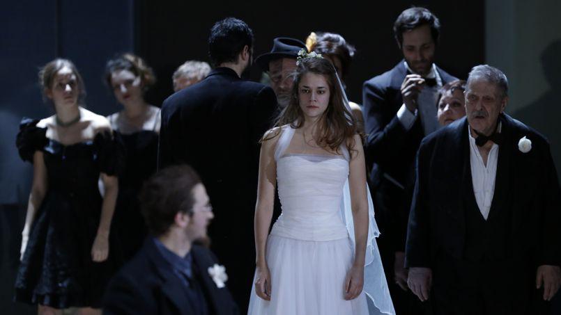 La noce avinée, où les corps s’effondrent, illustre cet éparpillement de l’être, les gestes lents qui s’effritent et les consciences asséchées qui partent en miettes. Dans cette antichambre, les manteaux noirs pendus évoquent ce peuple de fantômes qui ébranle la pureté des intentions de la jeune mariée. Ivanov n’est plus qu’un zombie cloué à son fauteuil, déjà disparu sans que l’on s’en soit aperçu, il meurt devant le violoncelle de sa femme, sous les coups répétés des vérités du bon docteur, à cause de cette prostration contagieuse qui l’a étouffé jusqu’à le tuer. Et c’est bien sur cette humanité exténuée, si magnifiquement interprétée, c’est bien sur cette humanité en faillite, sur l’esprit des lumières qui s’enlise dans une vase visqueuse que l’on ne peut s’empêcher de pleurer.