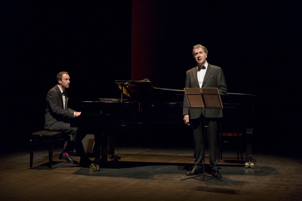 Aucun doute, c’est bien Raymond Devos ! Pas de doute, c’est François Morel ! Voilà un spectacle de doux dingues, d’une poésie miraculeuse, d’une folie sans furie mais allègre. Et ça fait un bien fou en ces temps incertains. Raymond Devos est mort, vive Raymond Devos… Et merci à François Morel de nous rappeler combien ce clown, ce grand fantaisiste qui de la langue française exhaussait la logique cartésienne et fantasque jusqu’à l’absurde, ne ressemblait à personne d’autre pas même à Dieu lequel, mauvais joueur, a fini par le convoquer – fini de rire ici-bas ! – un triste jour de juin de 2006. Car comme le dit si bien François Morel, si Dieu a créé le monde, Raymond Devos, lui, c’est un univers. Et toc, un clou d’enfoncé ! Un univers où la folie est raison parce que le monde, le siècle – le sien comme le nôtre – met la raison en échec. Raymond Devos avait la folie lucide des grands bouffons propre à dénoncer la bêtise humaine et de s’en amuser. François Morel ne lui rend pas hommage, non. C’est mieux que ça. Il ne se prend ni pour Dieu, qu’il imite très bien, ni pour Raymond Devos qu’il n’imite jamais. François Morel, fleur bleue comme il est indiqué sur sa carte de visite, reste à sa place, histrion lunaire et pragmatique tout à la fois, réinterprétant à sa manière unique et insensée, voire joliment naïve parfois, la poésie de Raymond Devos. C’est un récital où François Morel joue et chante (Ah, L’oie de Louis en version lied !), revisite le répertoire à sa façon et sans façons avec une gourmandise non feinte. Exercice d’admiration certes, mais plus encore, le bonheur immense, ça se voit, de partager cet univers poétique et dingue où le verbe, la langue si pointue, aiguisée, claire, alerte de ce magicien était une matière vivante et rétive avec laquelle Raymond Devos jonglait haut comme il jonglait avec cerceaux, balles et boules de bowling. François Morel ne se prend pas pour Raymond Devos. Mais il réussit à tirer à lui, avec brio et sans forfanterie, sans jamais le trahir, cet univers sens dessus dessous où parler pour ne rien dire est un exercice aussi délicat que d’enfoncer le même clou sans explication à donner ou de découvrir que son chien c’est quelqu’un tout en pianotant du Fernando Sor et jouer de la scie musicale en partance pour Caen découvrir la mer même démontée… C’est un récital joyeux, hilarant et le plus souvent pince sans-rire où le non-sens absolu est la logique imparable et la règle. Avec ça quelques trouvailles, pépites précieuses d’émotion, qui vous bouleversent, déchirant soudain le rire énorme qui ébranle la salle. La voix du Maître à la question par Jacques Chancel dans Radioscopie, incise qui soudain oblige au silence. Un ange passe et sans l’ombre d’un doute, un dernier soupir post mortem. Et ce récital d’histoire à dormir debout ne serait pas tout à fait ce qu’il est si François Morel n’était accompagné d’un drôle de ludion, souffre-douleur consenti, l’incroyable et quelque peu farfelu pianiste Antoine Sahler (en alternace avec Romain Lemire). Lequel a composé la musique de ce récital loufoque et donne la réplique, une véritable joute verbale drolatique, un vrai duo, à François Morel. On pense évidemment aux deux pianistes de Raymond Devos, Jean-Michel Thierry et Hervé Guido sans qui cet hommage serait incomplet. Et puisque savoir choir est tout un art, François Morel indiscutablement a l’art du gag léger et de la chute impromptue. Si la dernière n’est pas fatale, à moins de s’étrangler – au réel – de rire, elle conclue joliment, avec douceur, en apesanteur, avec intelligence, cette création désopilante. Le monde est fou, au bord du gouffre même, prêt à basculer, mais avec Raymond Devos et François Morel le rire, même primitif, propre de l’homme, rend tout ça supportable. Sans l’ombre d’un doute.