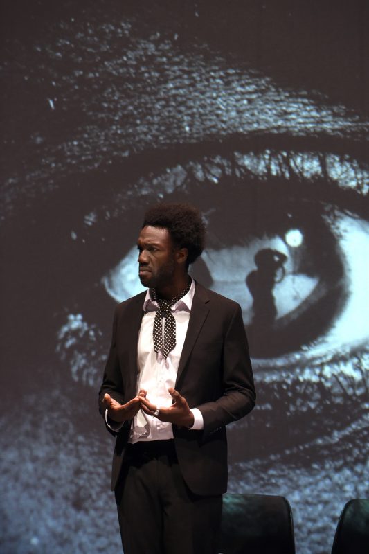 Si les parallèles et passages entre les personnages et les comédiens ne sont pas évidents à saisir, ils apportent une autre tonalité à cette discussion, qui devient plus personnelle encore dans les bouches de Marcial di Fonzo Bo et Jean-Christophe Folly. Ils offrent aussi un regard sur la préparation d’une telle création, qui passe forcément par la discussion et l’improvisation. C’est une forme légère, gérée en technique de l’intérieur, par les acteurs, et qui tient presque de la discussion avec le public, la conférence imaginaire. Cela peine parfois à insuffler une énergie suffisante au tout, malgré une grande intelligence dans le propos et dans la forme.