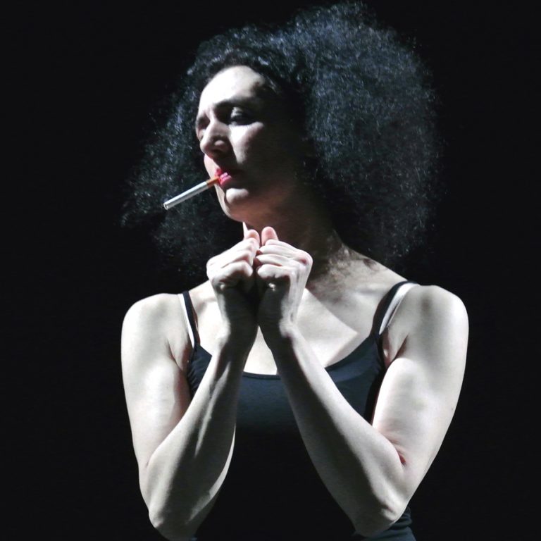 La danseuse a 60 ans. Le dos, les genoux, les pieds en capilotade. Les arabesques ne montent plus si haut. La récupération est plus longue. Là se relever devient problématique. Une jambe est devenue plus longue que l’autre… Cristiana Morganti, danseuse pendant plus de vingt ans chez Pina Bausch se raconte. Bien sûr, l’ombre de Pina Bausch que l’on guette et attend plane, nichée là quelque part sur le plateau mais ce n’est pas le sujet ici. Le sujet c’est Cristiana, celle qui, enfant s’était inventée un double, Jessica Bayer. Il y eu un avant le Tanztheater de Wuppertal, il y a un après aussi. Bien sûr on ne coupe pas un tel lien aussi puissant, Cristiana Morganti est toujours invitée dans la compagnie qu’elle avait intégrée en 1993, quittée non sans appréhension en 2014. Mais elle a cette élégance d’en parler en creux, à bas-bruit, voire d’éviter avec pudeur le sujet. Car que dire sinon danser, tout est là. Une vie à danser. Dans cette gestuelle que l’on reconnaît entre toutes, dans l’expressivité singulière du mouvement. Bras déliés, courses, chutes, marches et chevelure secouée… Elle en joue comme une piqure de rappel, un clin d’œil, et plus encore, comme une identité irréfragable. Si donc le thème affiché était de s’en libérer, c’est quelque peu fichu. Oui et non en fait. C’est un faux nez et un pied de nez car la question centrale qui traverse ce solo c’est bien avant tout qu’est-ce qu’être danseuse à 60 ans. Et pour ça, on remonte le temps, celui de l’apprentissage d’abord, celui de l’engagement ensuite auprès de Pina Bausch, 20 ans quand même, et aujourd’hui ce solo d’une ironie mordante et d’une grande finesse comme un bilan provisoire que l’on pose là, sur le plateau, comme un cadeau. Sans doute pour y voir plus clair. Et repartir plus loin. Vrai /fausse interview où elle démonte non sans humour les clichés afférents à Pina Bausch, se débarrasse de la question du Tanztheater qui revient comme un leitmotiv lassant pour se recentrer sur Jessica/Cristiana. Et Jessica/Cristiana danse entre deux confidences. Parce que la danse raconte aussi surement que la parole et même plus. Ça démarre d’ailleurs très fort où Cristiana Morganti exécute une chorégraphie et en voix off commente ce solo. Et c’est joyeusement trivial. C’est vrai, on ne se demande jamais ce à quoi pense une danseuse de cinquante ans qui exécute une chorégraphie… C’est drôle et sans concession et c’est cet humour-là qui traverse cette pièce, solo d’une grande franchise et d’une autodérision qui désamorce toute célébration de soi, tout narcissisme. Accuse la fragilité d’une danseuse devant un avenir à redéfinir quand le corps, c’est elle qui le dit, est désormais quelque peu « déglingué » et que Pina Bausch quoiqu’on fasse vous colle à la peau. Qu’elle remodèle son corps pour être plus conforme aux canons de la danse classique dans une séquence hilarante ou qu’elle traverse le plateau en diagonale dans des escarpins rouges bien trop grands pour elle, comme un résumé, un raccourci de l’enfant qu’elle fut et de la danseuse emblématique de Pina Bausch devenue, dans cette compagnie où les talons hauts sont inscrits au répertoire de la compagnie et dans la mémoire collective, escarpins qu’elle retire comme on se dépouille du passé, Cristiana Morganti a le sens de l’image qui vous foudroie net et de la formule définitive. Revenons à Pina Bausch, il y a beaucoup de pudeur à en parler. Et la réponse de Cristiana Morganti est formidable, bouleversante. Ce que lui a appris Pina Bausch ? A fumer. Et dans cet acte banal, qu’elle déteste ne fumant pas, se niche tout l’enseignement de Pina Bausch, le résumé pudique et éclatant d’une carrière au sein de la compagnie de Wuppertal… Il faut voir Cristiana Morganti fumer, geste d’une précision radicale qui vous coupe le souffle, métamorphose le corps, allant naturellement bien au-delà du geste lui-même. La dernière image, une histoire de cigarette toujours, vous crame. Image stupéfiante d’une beauté absolue, désarmante, d’une robe qui s’embrase comme on brûle ses vaisseaux.