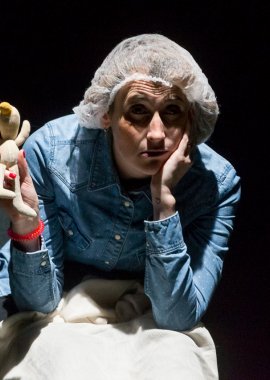 Sarah Péb’ prend le public à témoin, nous entraîne, nous raconte, nous invite même à suivre ce rythme après le spectacle, dans un bar, peut-être avec son mini lapin en peluche, qui sait, un lapin sans doute repère et attache magique, le plus fort de tous, le fruit de la résistance ? Le résultat est costaud, sans aucun doute. Sarah Péb’ et Élise Mc Leod ont souhaité mettre en volume, en son, en lumière toutes ces idées, tous ces souvenirs sur scène. Un fauteuil résume les rapports plus familiers, une chaise rigide sert de salle d’attente, se transforme en cabinet des différents médecins, en lit ce curieux lit roulant inéluctablement vers l’anesthésie, l’opération et … ?