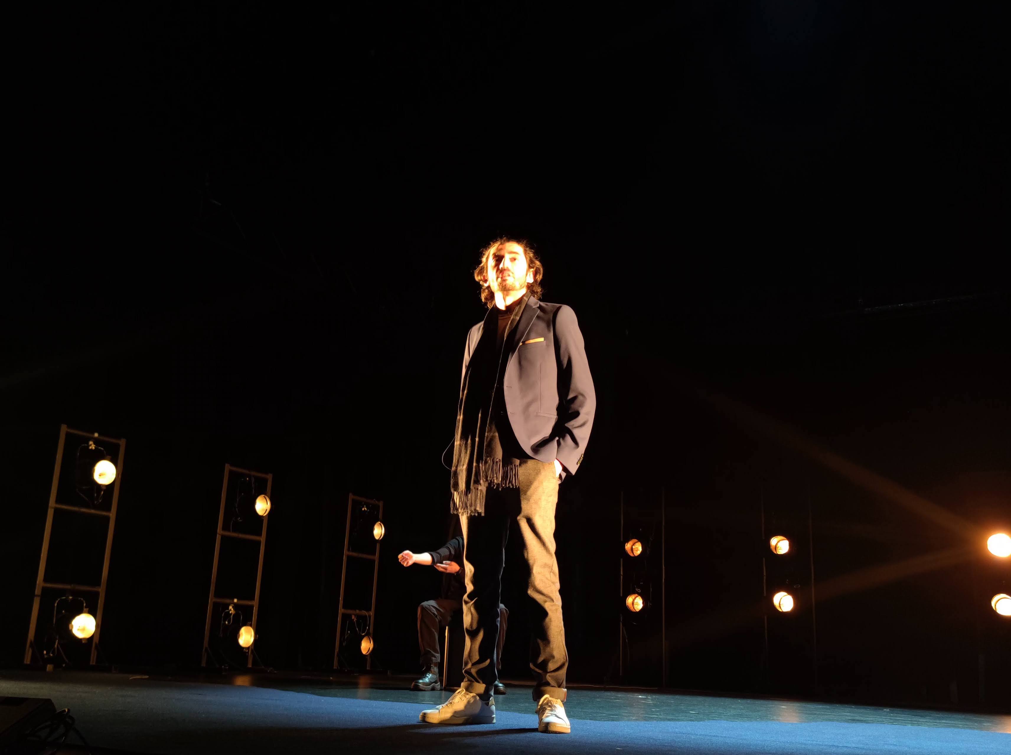 La mise en scène au décor minimaliste prouve qu’il n’est pas indispensable d’en mettre plein la vue à coups d’effets spéciaux pour créer un spectacle puissant. L’adresse directe au public est privilégiée avec un remarquable travail sur les lumières qui structurent l’espace de chaque récit et accentuent l’effet montagnes russes des monologues en écho avec l’engrenage sadique. En fond de scène on devine des projecteurs comme des consoles de jeux ou des enceintes wifi, tout est aseptisé, crépusculaire. Benjamin Guyot fait confiance à sa direction d’acteurs et à la force du texte. Il a raison. Éric Antoine, Antoine Cordier et Thibault Rigoulet sont impeccables, nul besoin d’en rajouter sur une écriture pareille dont ils captent les nuances, les ruptures et les pichlines. Leurs gestes précis créent des images et nous glacent le sang.