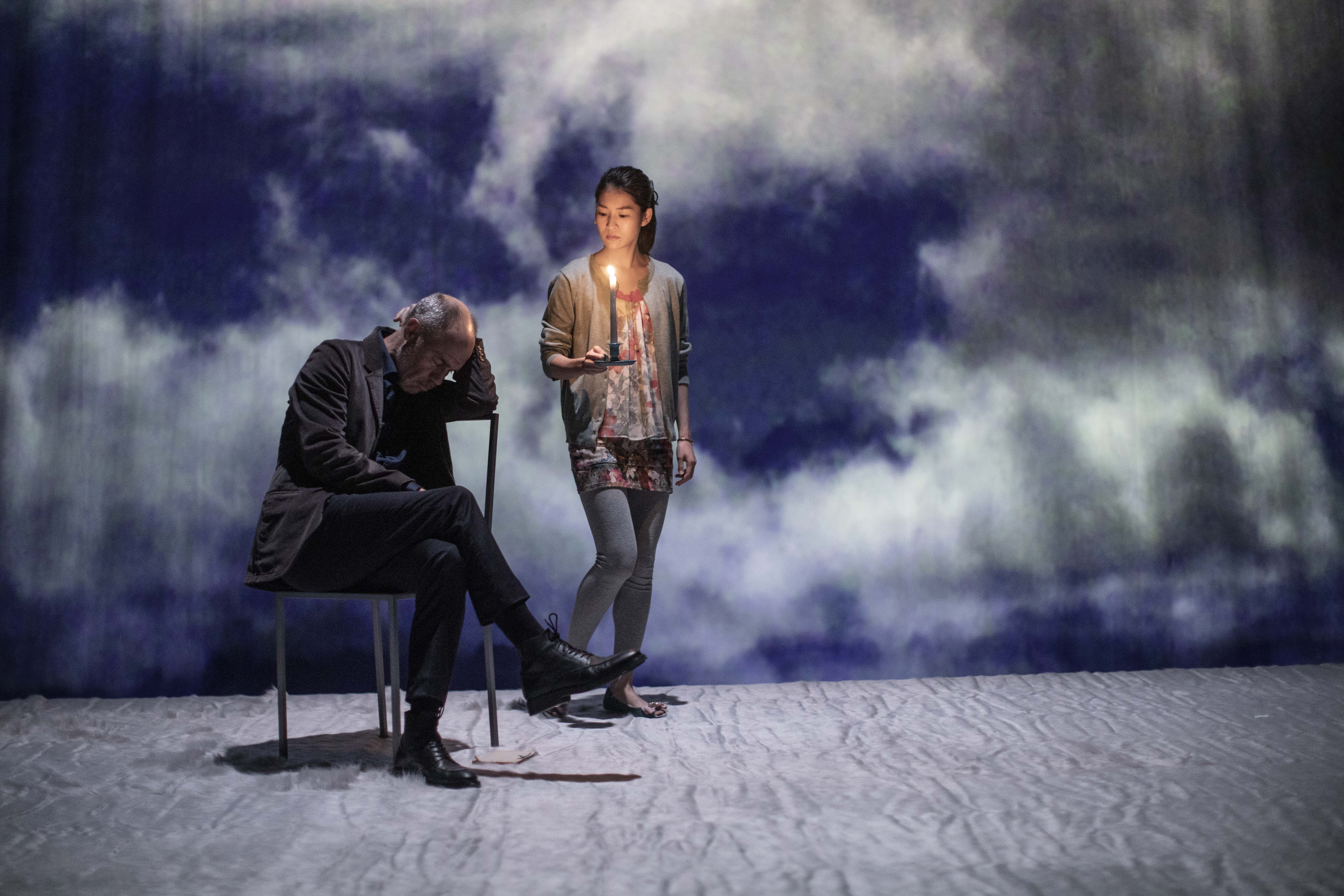 La Cerisaie, dernière pièce d’Anton Tchekhov c’est la prémonition d’un monde prêt de disparaitre. Le rachat de la propriété par Lopakhine, fils de moujik, acte le bouleversement d’une société inconsciente de sa mutation, de la déliquescence d’une aristocratie et la montée irrésistible d’une nouvelle classe de dominant et d’idéaux qui annoncent la révolution. C’est une pièce où il semble ne rien se passer, où les échanges semblent parfois anodins, mais ou sourd une inquiétude que cristallise la vente du domaine. C’est une comédie, Anton Tchekhov l’affirmait, mais traversée d’une tragédie latente. Daniel Jeanneteau et Mammar Benramou mettent en scène La Cerisaie, crée au SPAC-Shizuoka Performing Art Center (Japon), avec élégance dans une scénographie épurée. Plateau vide, deux chaises et la structure d’une armoire, rien qui ne fasse obstacle au texte, et un ciel nuageux, lequel ici a son importance. Au long de cette comédie les nuages s’amoncellent, le ciel vire à l’orage, devient noir et lourd de menace, avant de s’effacer pour un écran blanc. C’est là, résumé avec économie, toute la tension dramatique de la pièce. Alors que sur le plateau, règne le plus grand calme où rien ne semble pouvoir troubler le drame qui s’annonce, le désamorçant même. Le temps est comme étirée, suspendu. Un monde flottant. Nul éclat, nulle violence ne brusque la partition jouée en deux langues, français et japonais, qui se répondent sans heurt. L’orient et l’occident sont ainsi noués dans un geste singulier qui souligne par cette proposition originale l’universalité des sentiments traversés par les personnages. Il y a dans cette impassibilité apparente de chacun, voulue par les metteurs en scène, comme la résignation apaisée devant une fin inéluctable qu’on ne voudrait démentir, une mélancolie pour ce qui fut et ne saurait plus être, mais étrangement pour ce qui adviendra, la capacité de prendre son destin en main dans l’ignorance assumée ou la prémonition de ce qui sera. Une lucidité douloureuse des évènements que l’on masque derrière de faux-semblants, une placidité trompeuse. C’est ce qu’on en commun Lioubov (Haruyo Hayama) et Lopakhine (Philippe Smith), à l’opposé pourtant l’un de l’autre mais conscients et dans l’acceptation d’une mutation irréversible d’une société à son crépuscule et dont ils rebattent à leur façon et pour eux même les cartes. Et c’est cette inquiétude d’une humanité qui chancelle et doute, en souffrance, que Daniel Jeanneteau et Mammar Benramou mettent en exergue, comme un reflet de notre époque en déroute. Cette inquiétude qui traversait déjà l’œuvre d’Anton Tchekhov. Haruyo Hayama donne à son personnage beaucoup de délicatesse, une grande fragilité mais également une assurance jusque dans ses contradictions. Elle n’est pas dans l’inconséquence, comme trop souvent représentée, mais dans une générosité qui l’ancre obstinément dans le présent. La vente de la cerisaie semble ici plus un soulagement qu’une perte, ouverte sur un nouvel avenir aussi intranquille soit-il. Seulement, le reste de la distribution japonaise oppose un jeu forcé, parfois outré, voire franchement daté. L’impression de voir parfois cette comédie devenir une farce, un kyogen. Et cela détonne fort avec le jeu de la distribution française, plus en retrait, semblant chercher encore ses marques en cette première. Ce frottement entre ces deux jeux antinomiques grippe un peu la représentation dans cette volonté d’uniformité entre les personnages que pourtant la langue même réunie dans la volonté d’universalité. N’en demeure pas moins une Cerisaie d’une belle facture où comme l’exprime le vieux Firs, oublié dans cette demeure, « la vie a passé ».