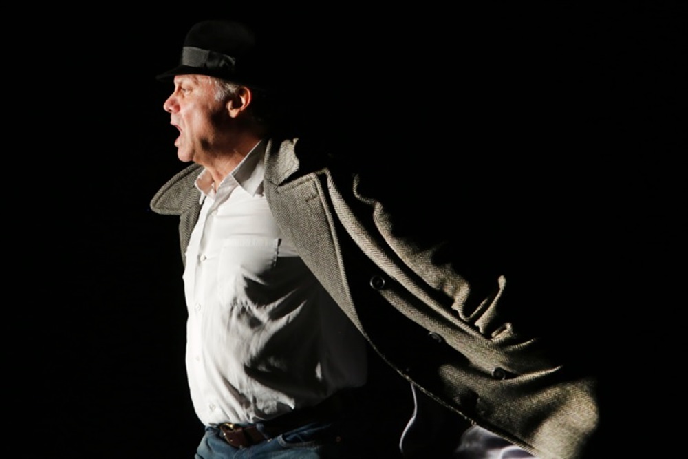 Dès l’entrée en scène du comédien on sentait avec un peu d’agacement, un public tout acquis à sa cause. Il aurait pu dire, faire, jouer n’importe quoi ou ne pas jouer du tout, le public l’avait déjà couronné… Mais même les plus enragés, ceux qui riaient d’un rire hystérique et sans raison, ont fini par s’oublier et écouter ses histoires.
