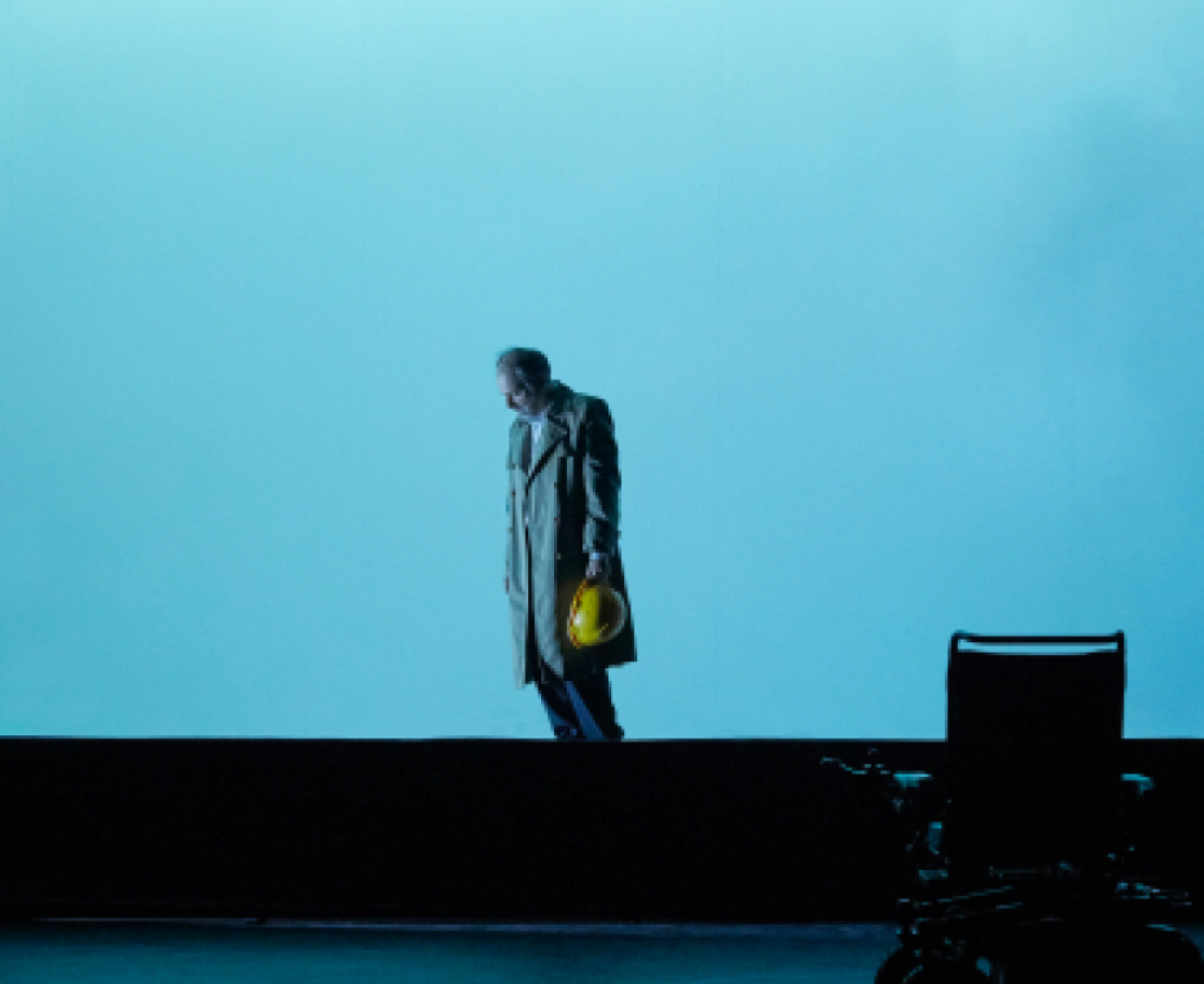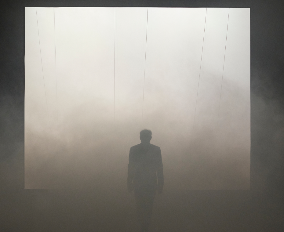 Elle est là cette fenêtre, qui occupe tout le fond de la scène. Derrière, un épais brouillard sur lequel sans doute se projettent les pensées de cet homme au débit étrangement calme, Denis Podalydès. A moins que ce ne soit celui provoqué par l’explosion. Ou peut-être l’état de conscience de celui qui parle. Aurélien Bory signe une scénographie singulière, une formidable machine théâtrale, évoquant les dioramas, et qui participe de cette mise en scène délicate et sensible, extrêmement dense, au plus près du texte de Philippe Toussaint. Cette fenêtre au cadre mouvant, comme un obturateur d’appareil photographique qui lentement se ferme ou s’ouvre au fil du récit, c’est un espace mental au contenu toujours flou duquel surgit des images incertaines et fragiles, volatiles, et qui comme le paysage s’effaçant, inexorablement s’évapore et disparaît, condamne cet homme subitement conscient de sa mort. Formidable dispositif qui joue de la temporalité et de l’espace, des perspectives, de la lumière même, et diffracte le temps et la conscience tout à coup accordés et comme étrangement suspendus à l’instant de la déflagration. A vrai dire il n’y a que le vide derrière cette fenêtre que comble une pensée confuse, celle du personnage, et la nôtre aussi, sollicitée par le texte énoncé. Et puis il y a Denis Podalydès. Son intelligence toujours dans l’appréhension des textes approchés. Ici, un jeu tout en retenu, introspectif, attentif, sans effet et sans pathos aucun. Personnage enclos dans une pensée, une interrogation têtue et inquiète jusqu’à la révélation dramatique qui apaise enfin. En osmose totale avec cette écriture blanche de Jean-Philippe Toussaint, objective et si précise, sans être écrasé par cette scénographie originale qui l’accompagne épousant le fil tendu de sa pensée.