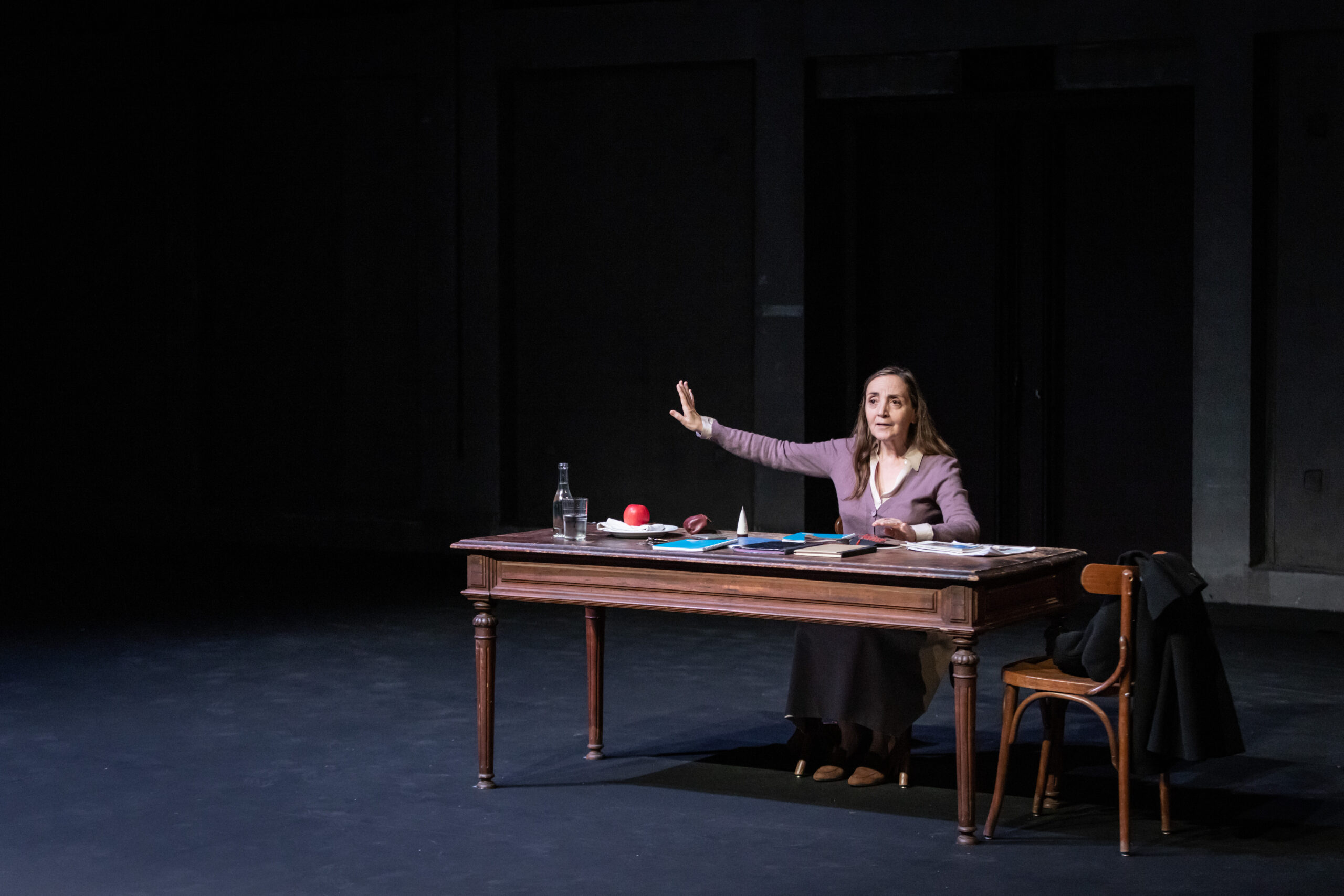 La voix résonne sur le très grand plateau, depuis un bureau massif. Dominique Blanc y est vissée, comme méthodiquement accrochée à son appartement, à son téléphone, à la possibilité de recevoir des nouvelles. C’est elle, c’est la parole de cette femme qui porte le spectacle. Elle utilisera presque uniquement sa voix et notre imagination comme terreau pour nous raconter des histoires que l’on a peu entendues. Les histoires de ceux qui, restés dans l’attente, attendent. Ceux qui, ensemble mais en ne supportant pas la présence des autres, tentent de survivre.